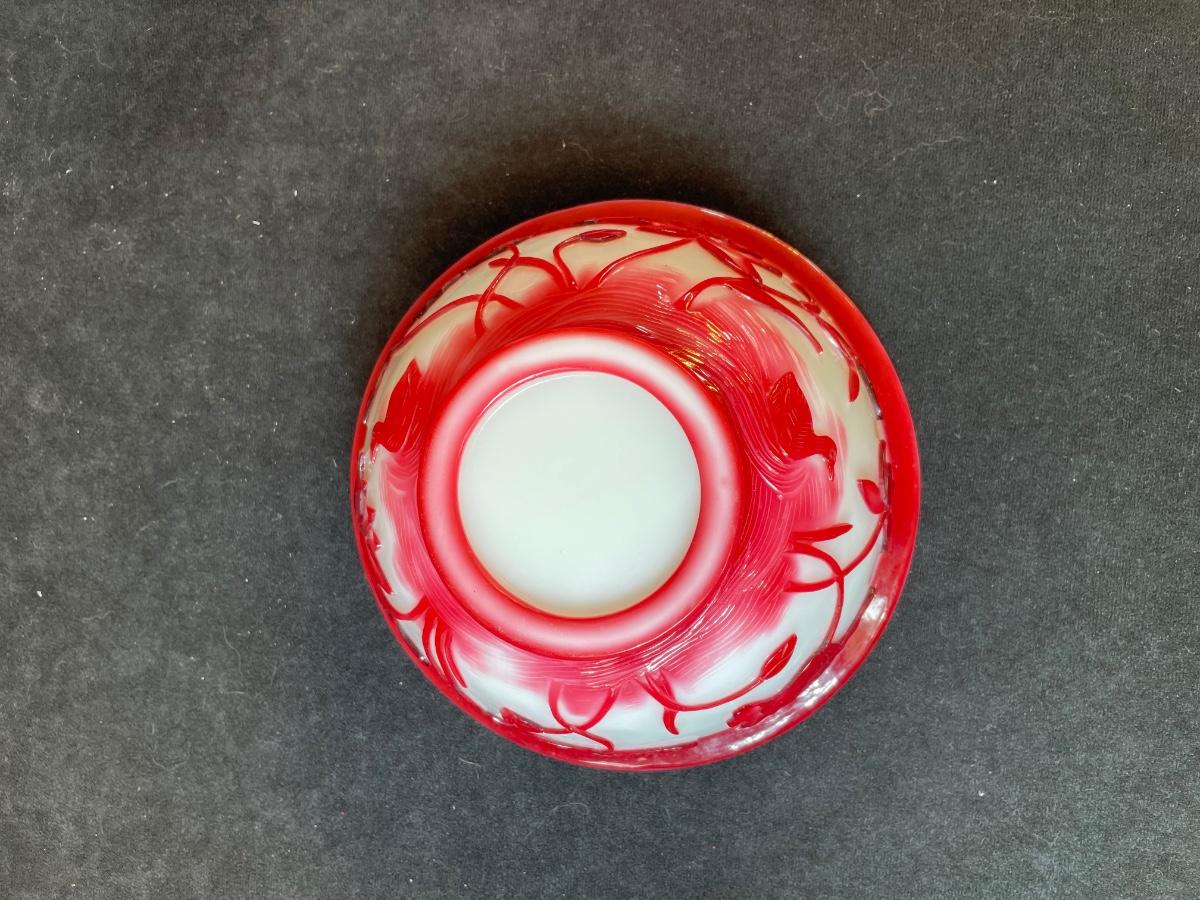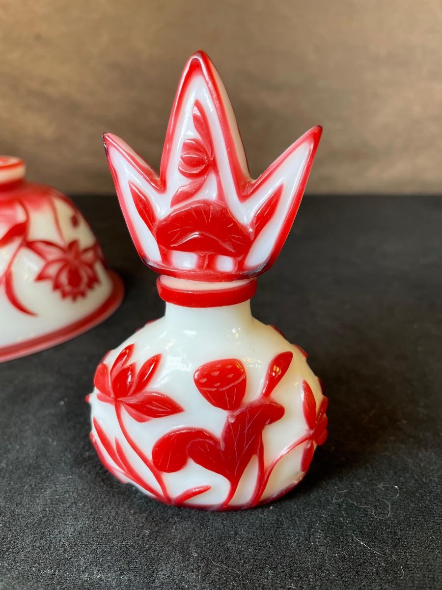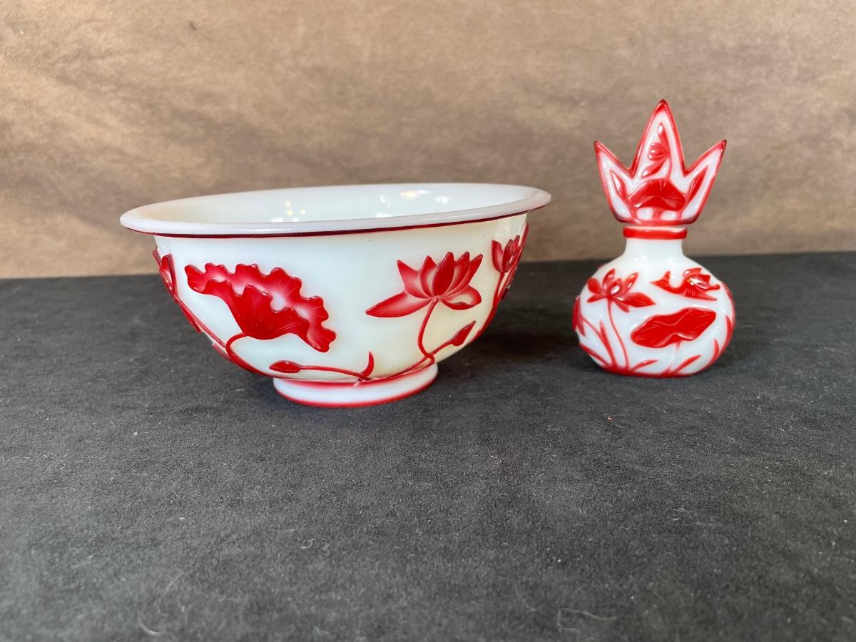 "Peking" glass bowl (7") and perfume bottle (5" tall). Perfect condition.