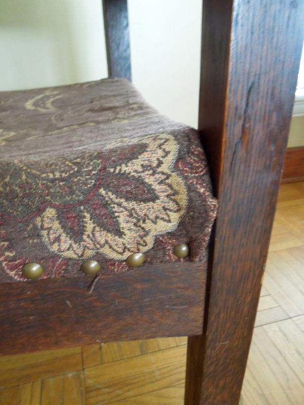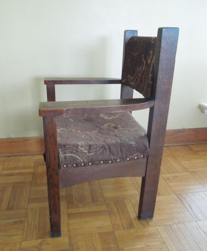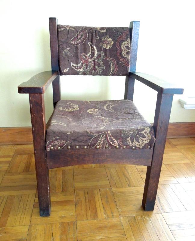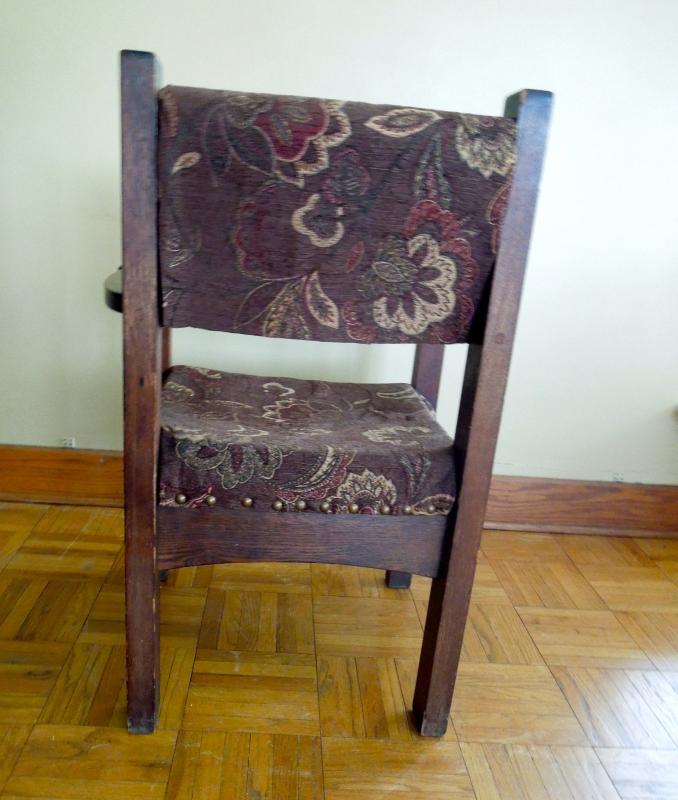Lot 12 Antique Mission Carpetbag Upholstered Oak Arm Chair