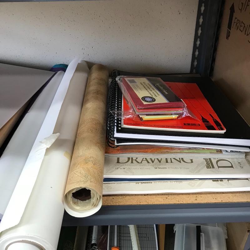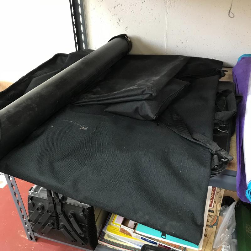 Several drawing pads, color card stock, roll paper, several portfolio bags and a tube, portable tracing easel (no light included). Lot is available for local pick up in Asheville, NC only.