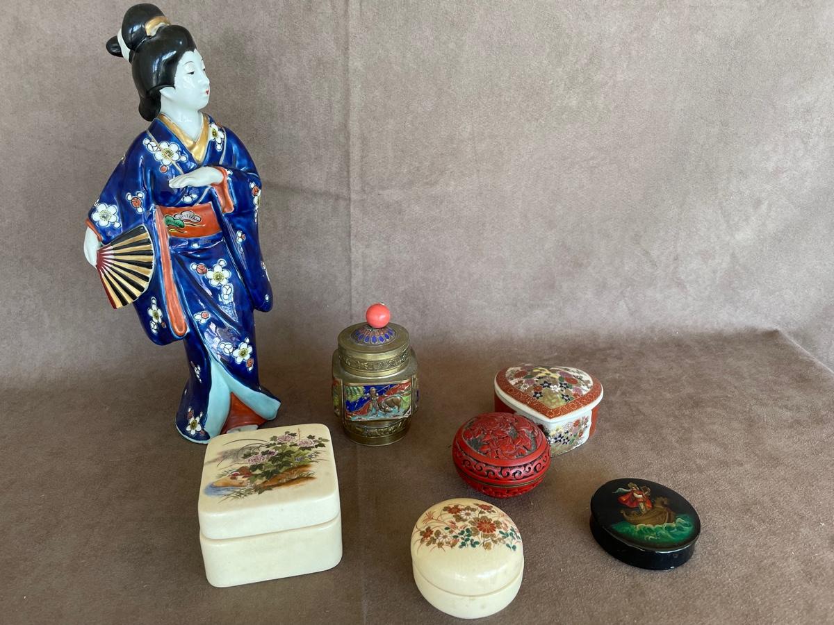 Lot 12. Asian Figurine and Assortment of Trinket boxes