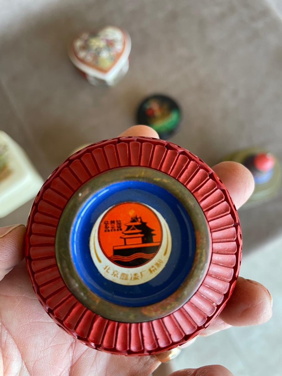 Six assorted trinket dishes with lids. Figurine is ceramic.