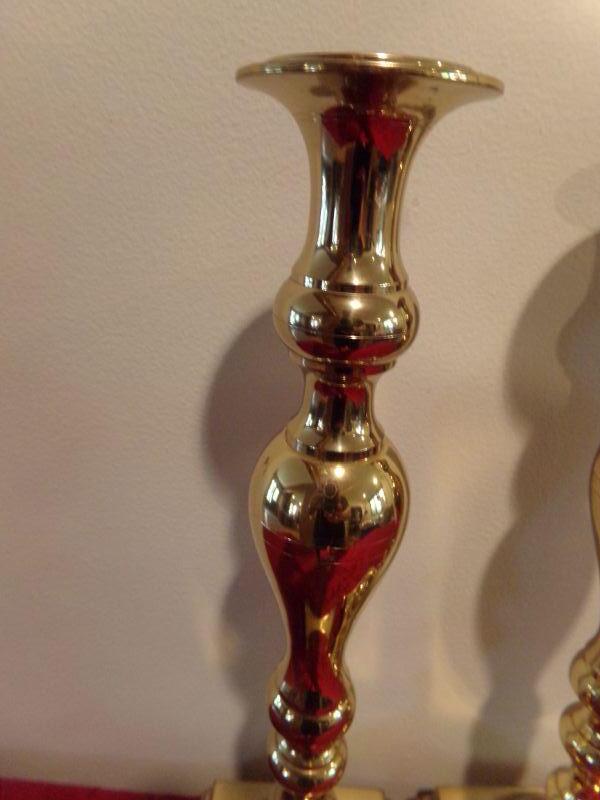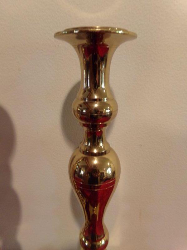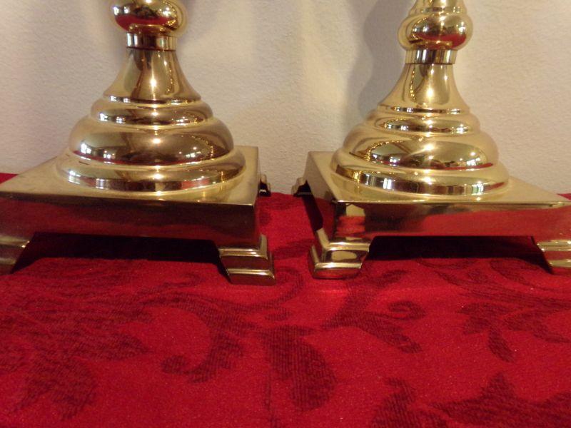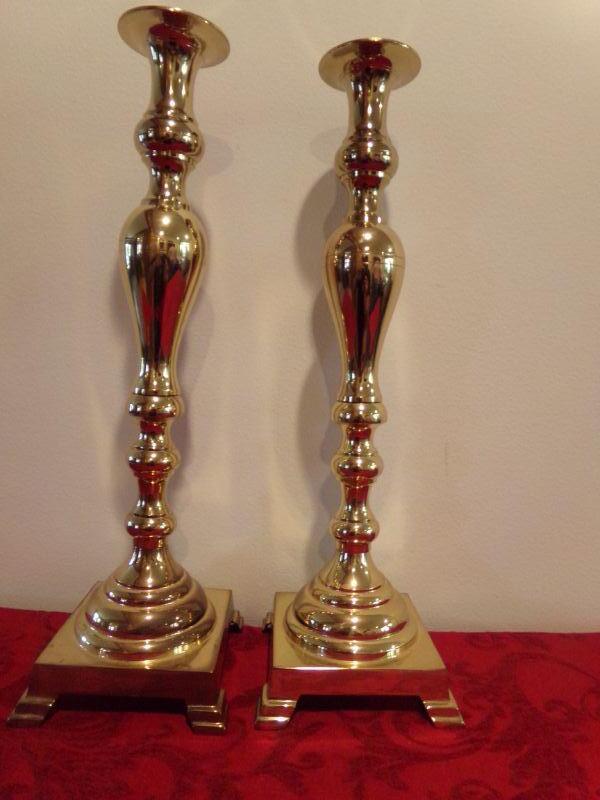 2 MATCHING BRASS CANDLESTICKS THEY MEASURE 18" TALL. AND TWIST APART FOR STORING