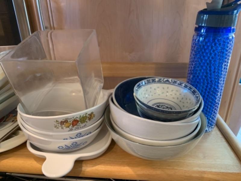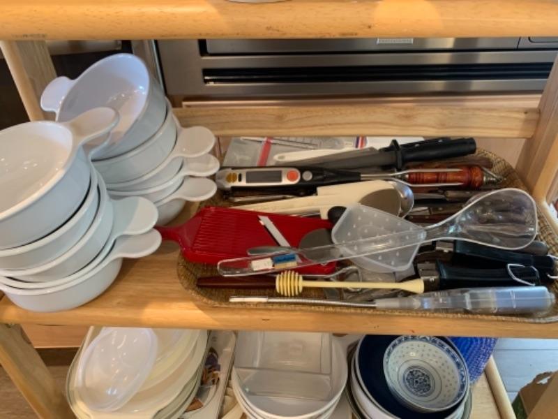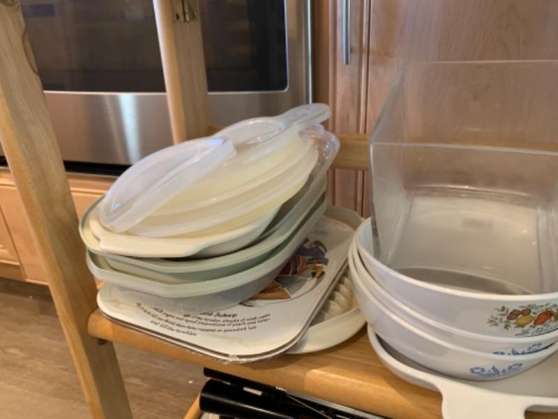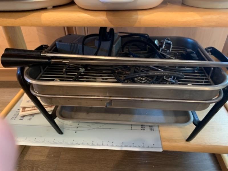 Lot 12. Farberware rotisserie, cookware, French onion soup bowls, cooking charts, mixing bowls, etc.--$45