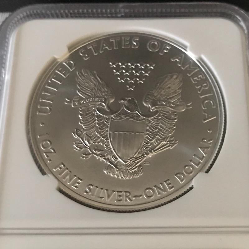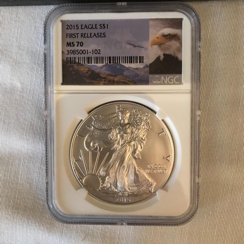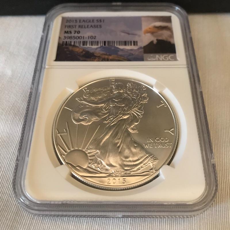 2015 First Release Silver Eagle. One Ounce Silver, graded by Numismatic Guaranty Corporation.
