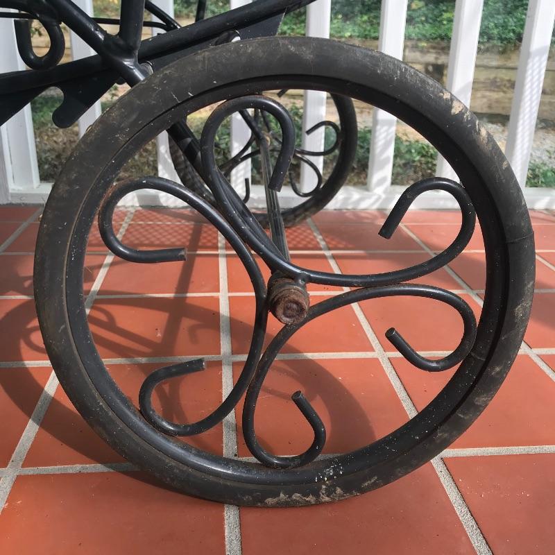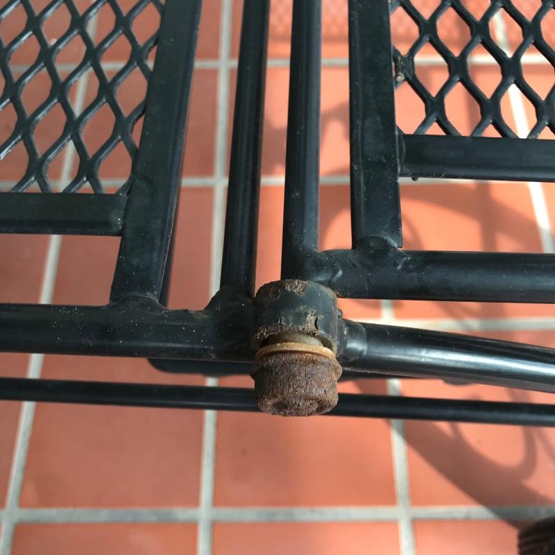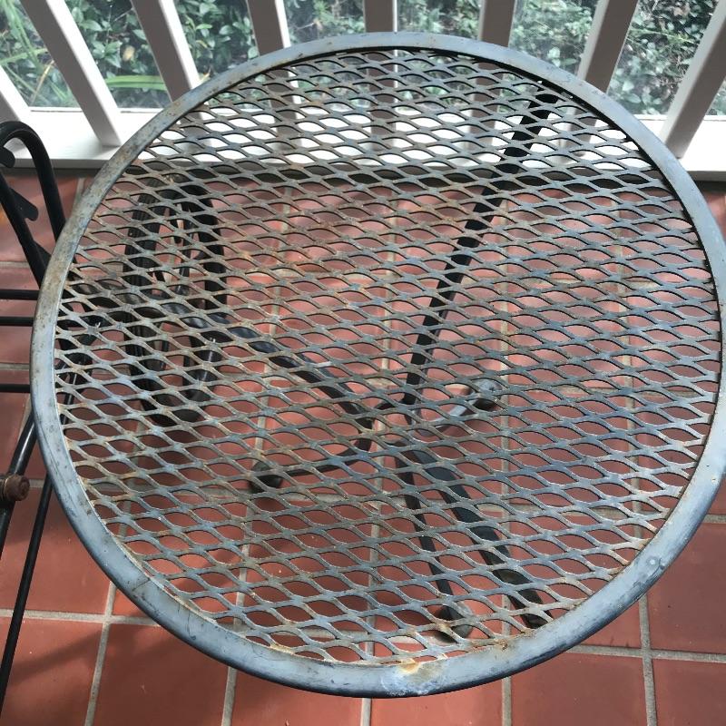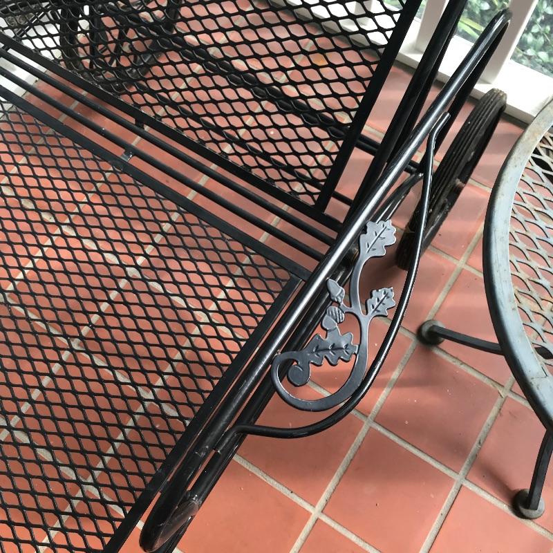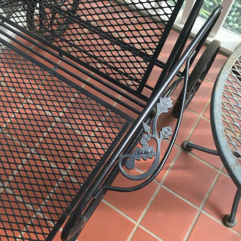 Just imagine lounging outside with the gentle fall breeze! This seat has six lounging angles to choose from! It also folds up so you can easily roll it to the most comfortable spot on your patio. We’ve included a small iron side table to make sure you always have a spot for your drink! Chair measures approximately 30” x 77” x 23” when extended as flat as possible. The lounger shows just a little rusting around its hardware and the table could use a new paint job, but is very sturdy. It measures 17”d x 23”. Local pick up only.