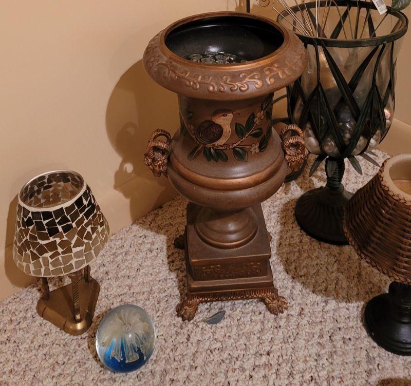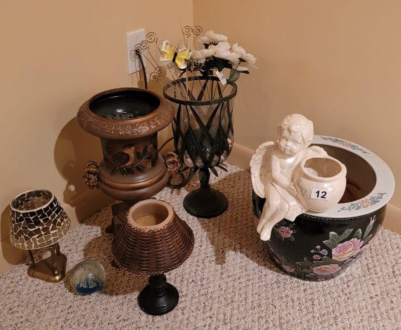 Lot 12: large Asian Planter, candles, paperweight, and more