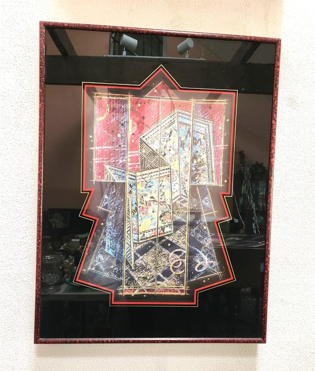 They paid a fortune to have this custom framed. William Gatewood lithograph "Red Screen Kimono", done in 1987 - LARGE - 49.5" tall, 37.5" across. Great condition - sure to be the focal point of any room. Gatewood is a well-listed artist and you can see many of his works online.