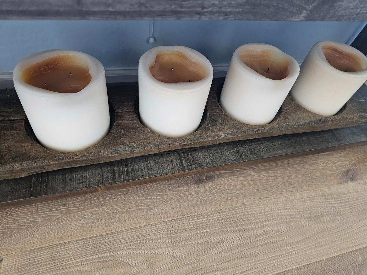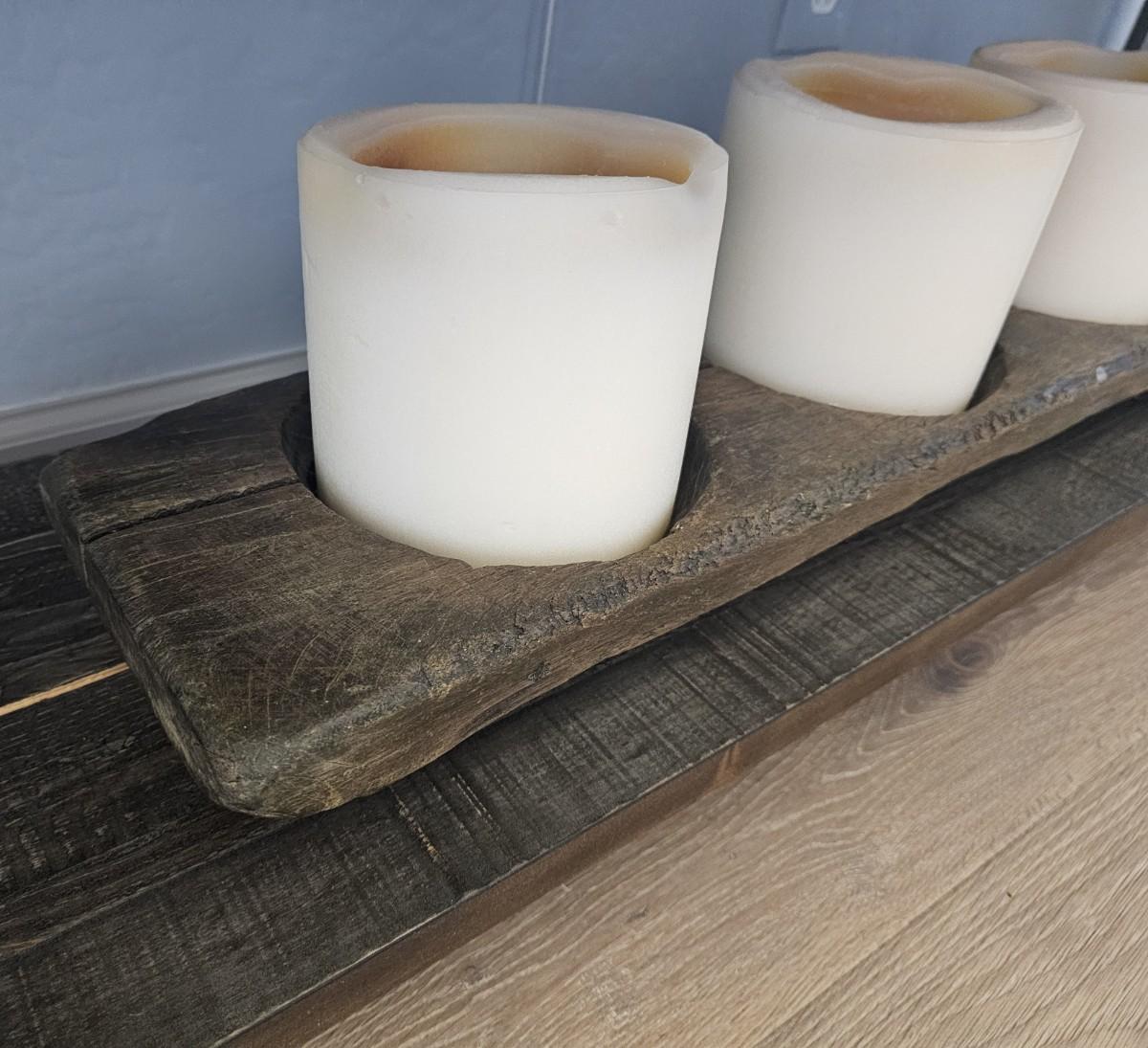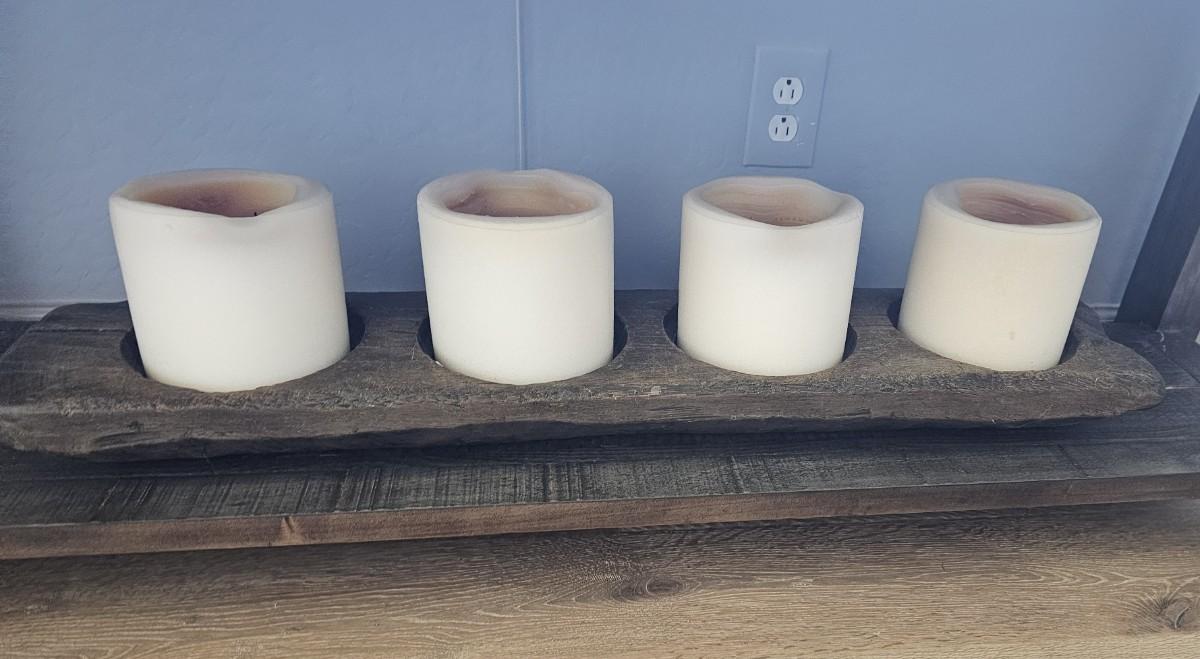 Lot 13: Large Wooden Candle Holder & 4 Large Candles