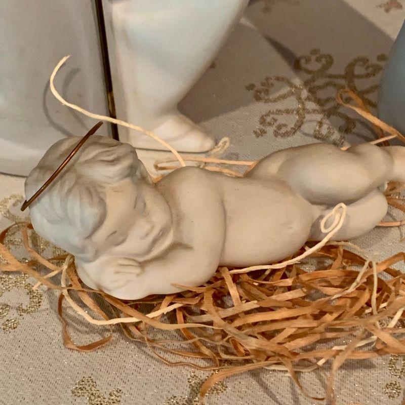Ladro figurines, Holy Family Nativity Set, # 4533, 4534, 4535 Joseph, Mary and Baby Jesus. Joseph figure is 7.5" tall, with staff 9". Mary 7" and Baby Jesus is 4"