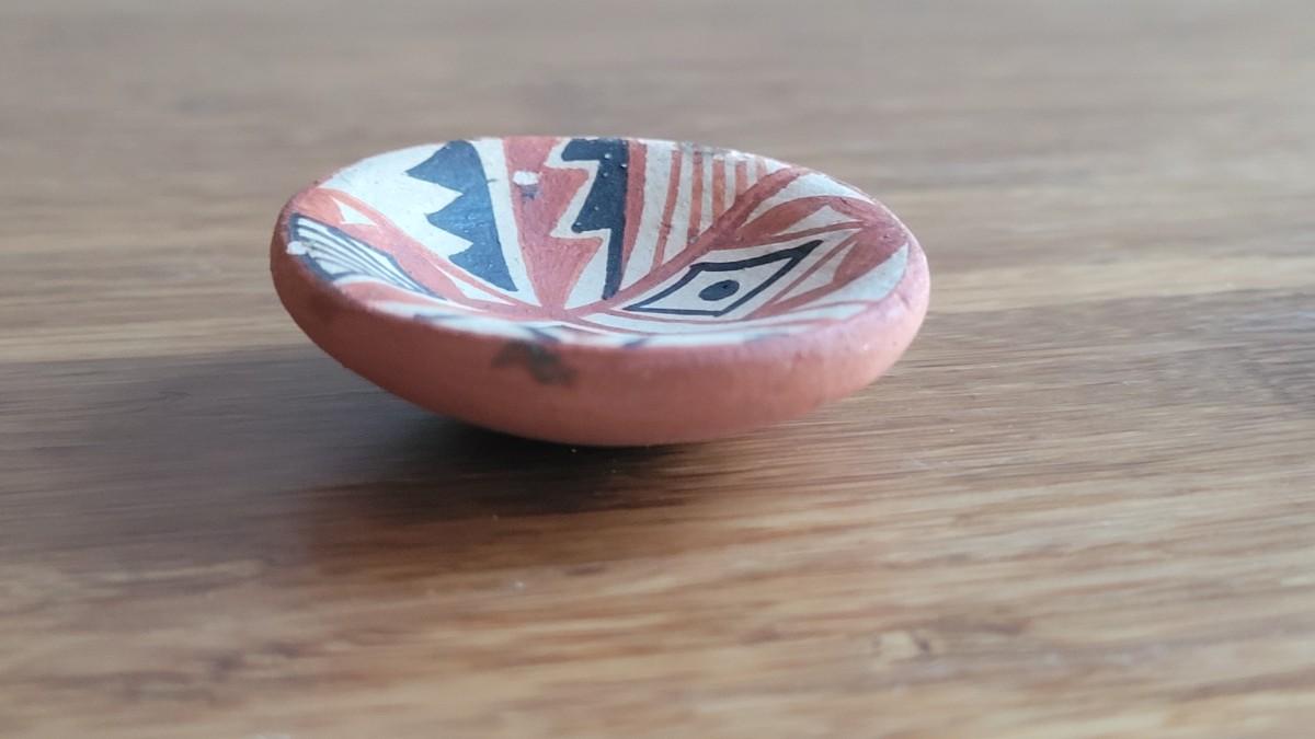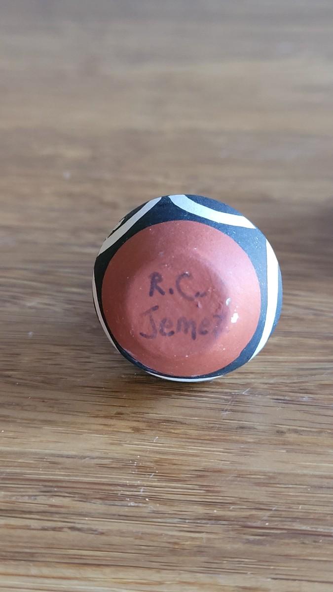 Pueblo plate is signed but not legible. The Jemez piece by R.C. has 2 flea bite chips on rim.