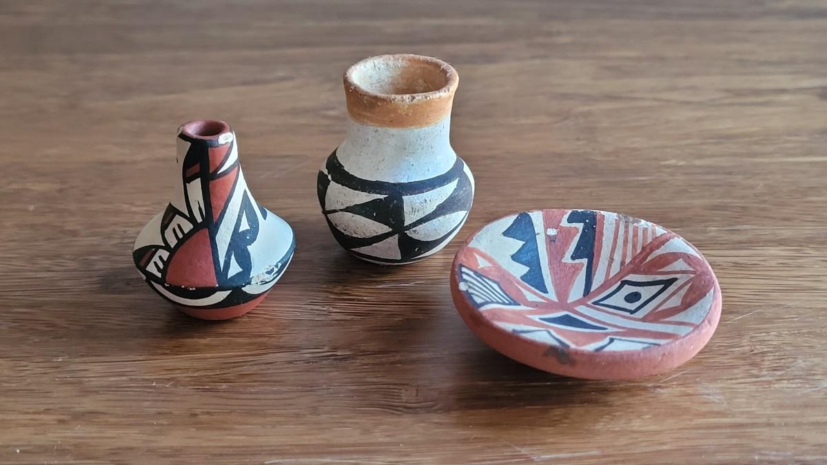 Lot 12: Miniature Acoma Seed Pot, Jemez Seed Pot by R.C. and Pueblo Plate