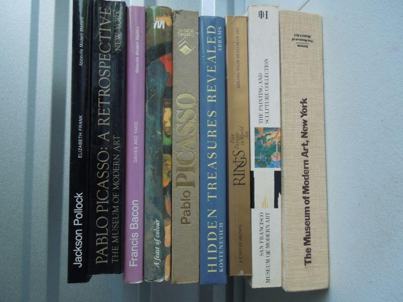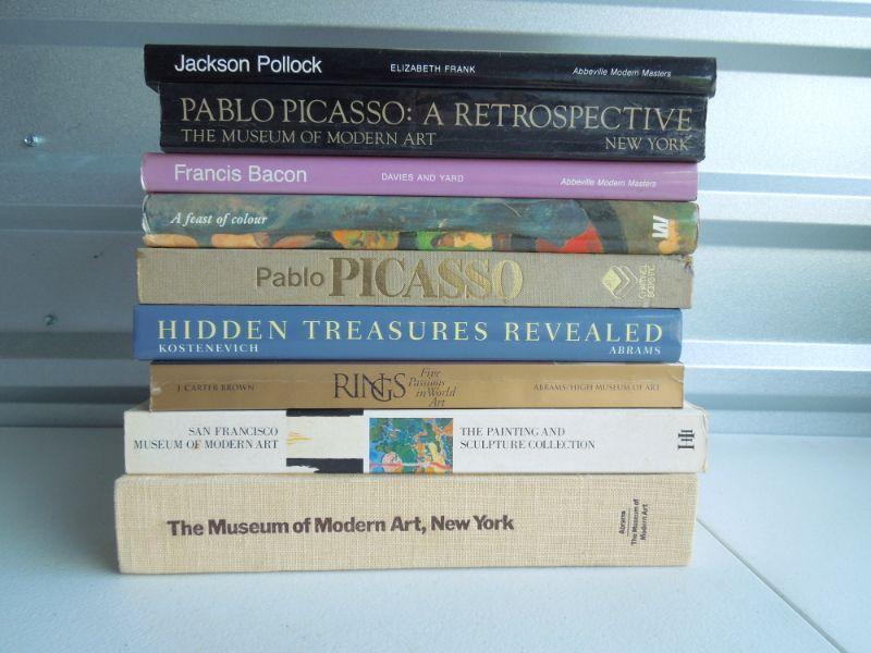9 books total in varying condition including Jackson Pollack, Picasso, Francis Bacon, and Modern ArtMuseum Collections from New York and San Francisco Modern Art.