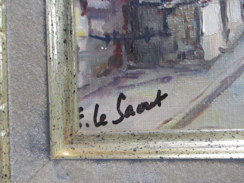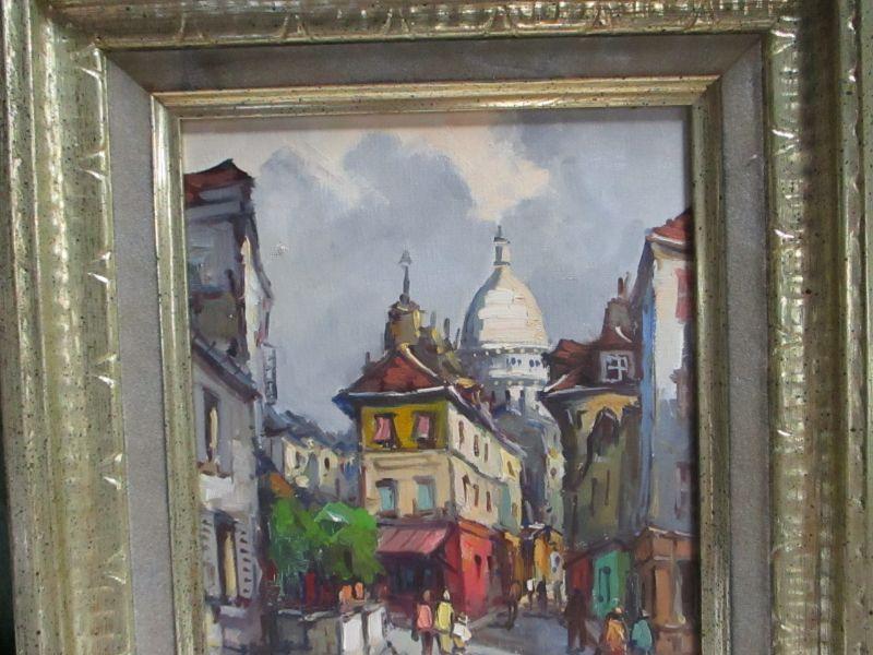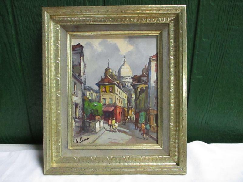 Oil painting of a European city. Frame measures approx 11 1/2" x 14"