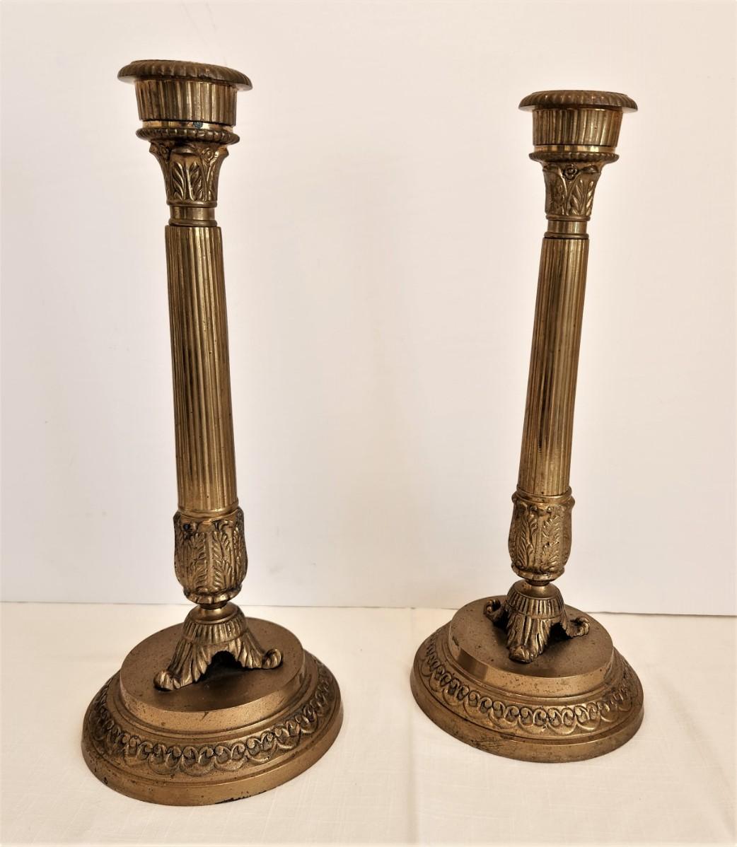 Nice pair of heavy brass candlesticks - they have some age to them. 14.5" tall - vintage condition. Classic!