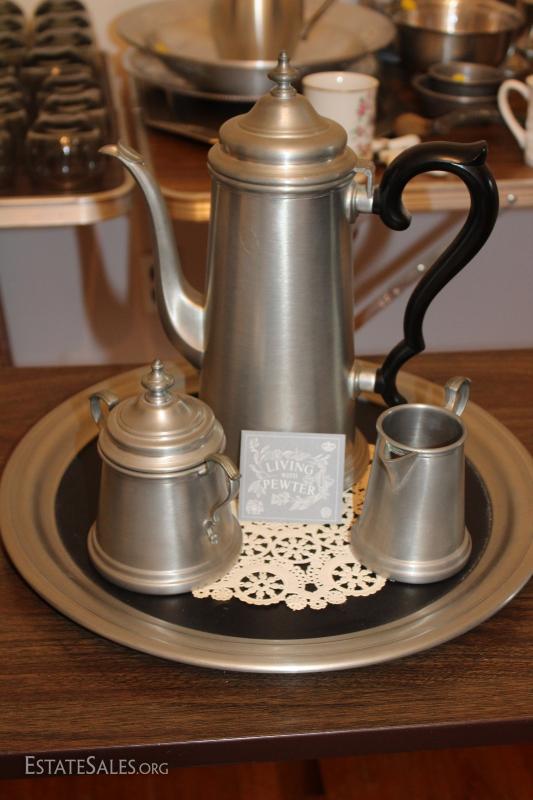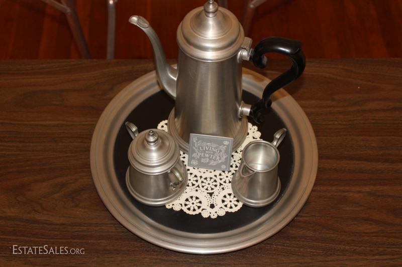 Lot #12 Pewter Tray w/ Pewter Coffee, Creamer, and Sugar
