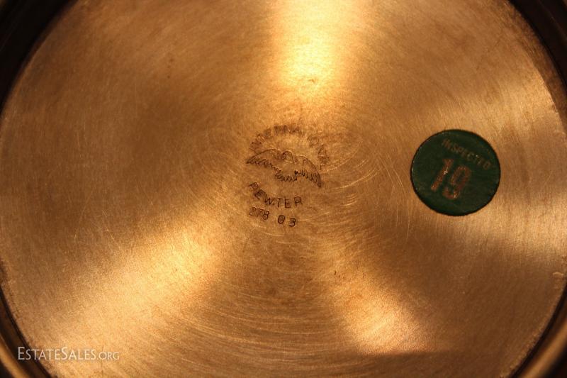 Lot #12 is a Pewter tray with a pewter coffee pot, creamer, and sugar container. Accompanied by card certifying authenticity.