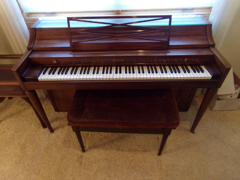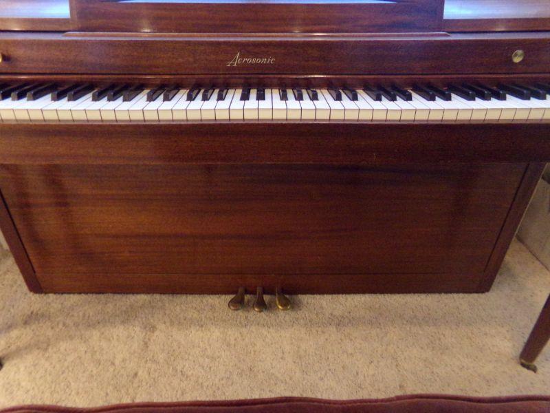 GORGEOUS BALDWIN "ACROSONIC" PIANO WITH PADDED BENCH AND A GOOD VARIETY OF SHEET MUSIC
