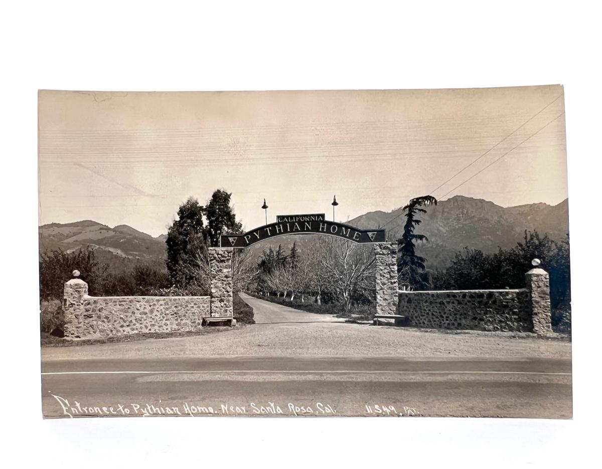 LOT 12 - Santa Rosa Postcard, a RPPC of the Pythian Home Entrance.. It is in good condition and unused. Small pink spot on the blank side. This item can be viewed at our Green + Cate Showroom in Sebastopol on December 2nd -December 5th between the hours of 9am-5pm.