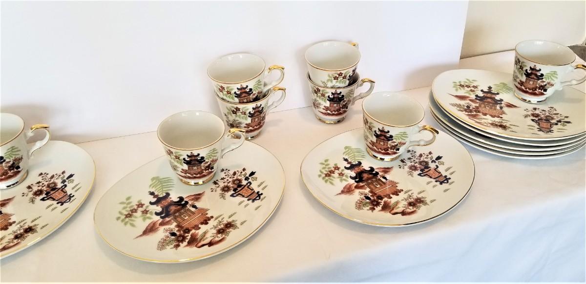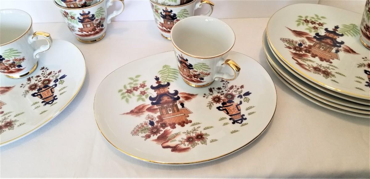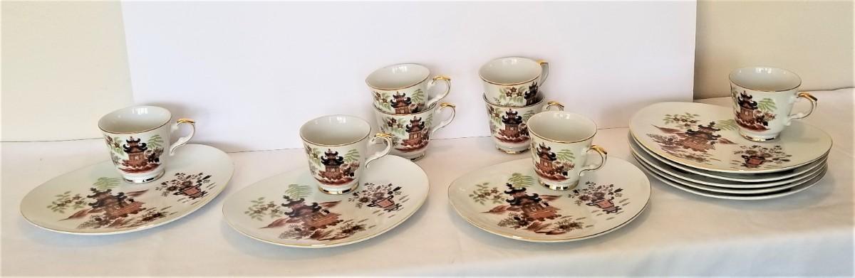 Lot #12 Set of 8 Vintage Snack Sets - Asian Motif