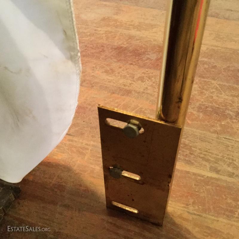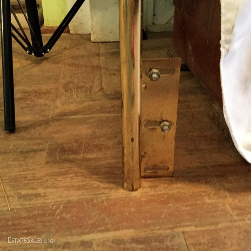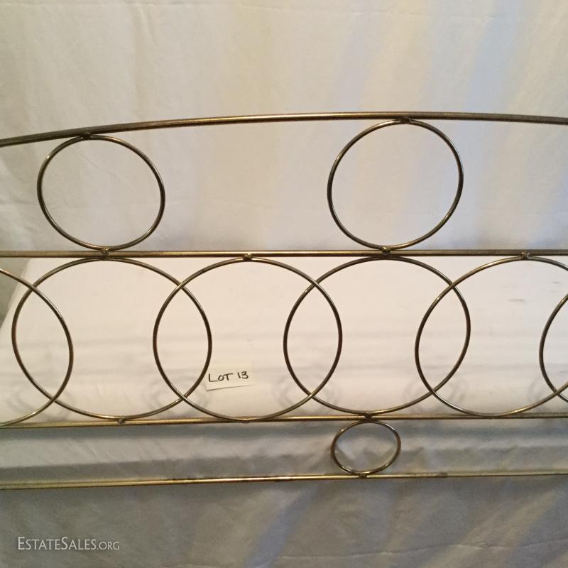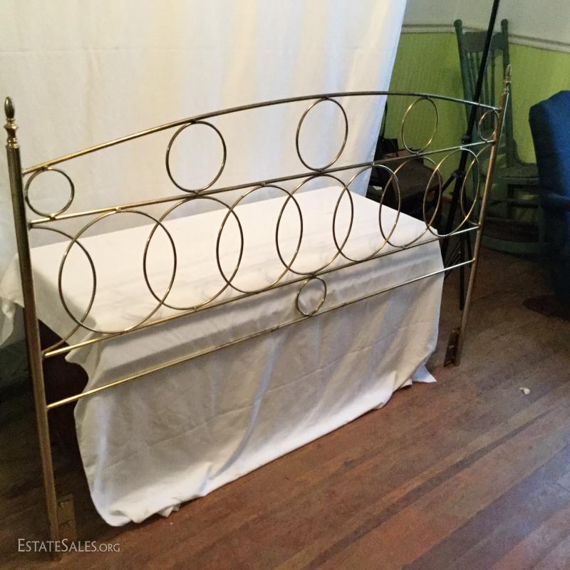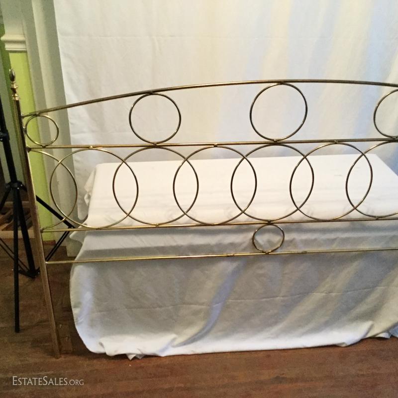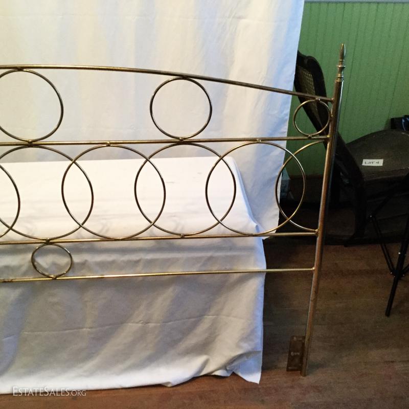 One Brass headboard with circle design. No footboard.