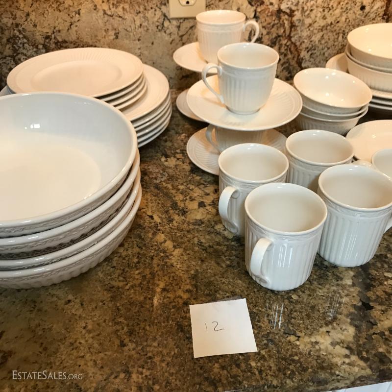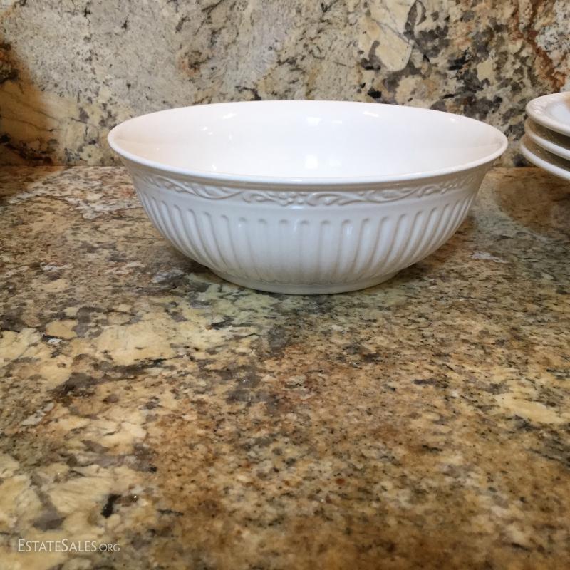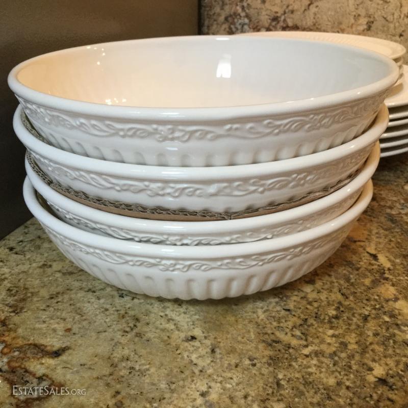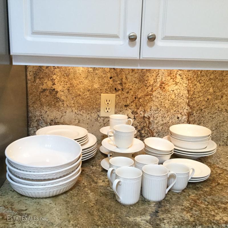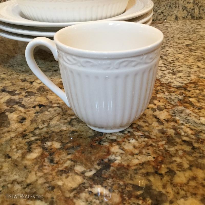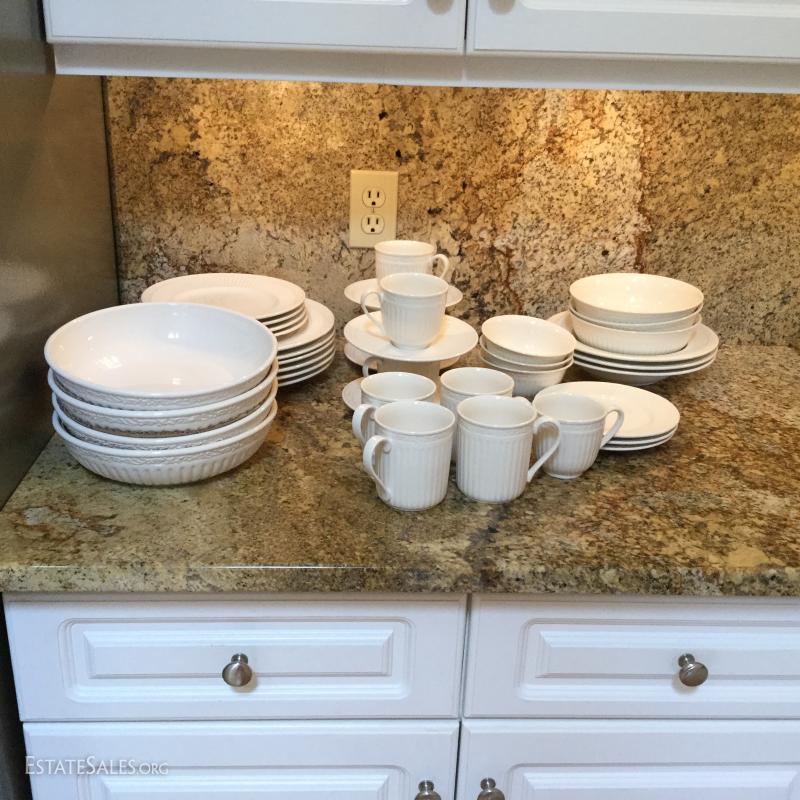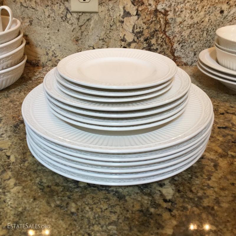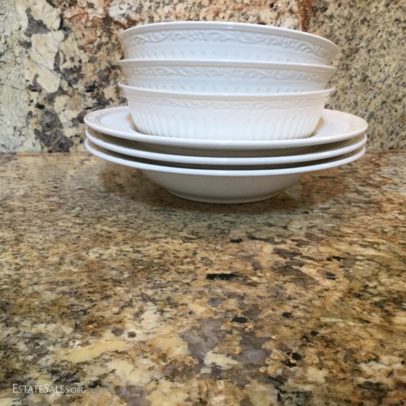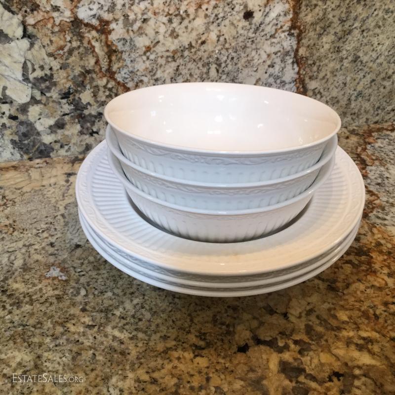 Set of white dishes by Mikasa. Italian Countryside design. 39 pieces.