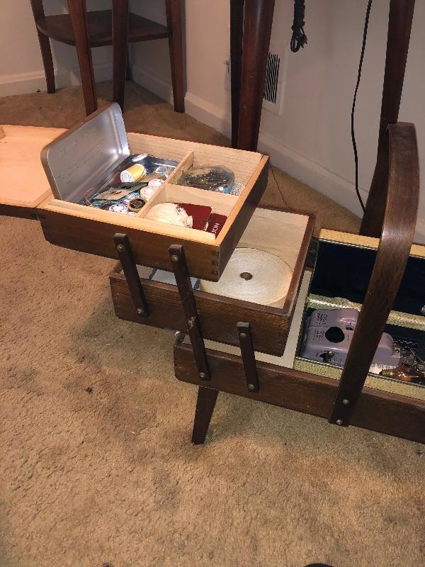 Lot 12 - Sewing Table and Sewing Box with Accessories