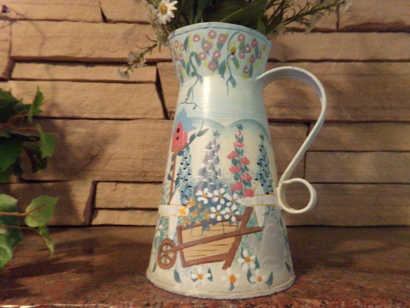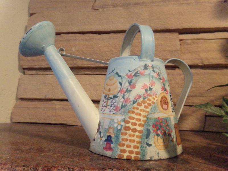 2 HAND PAINTED TIN WATERING CAN PITCHER.