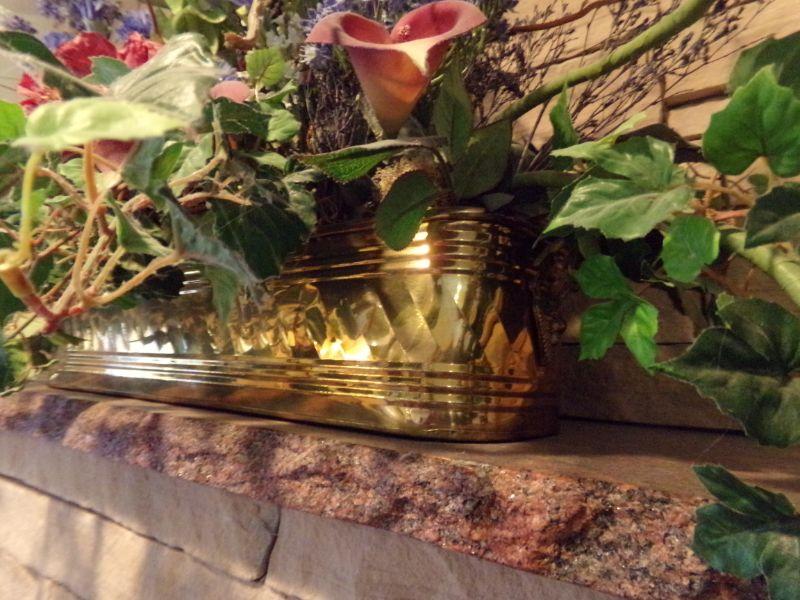 LARGE SILK FLOWER ARRANGEMENT IN A BRASS CONTAINER