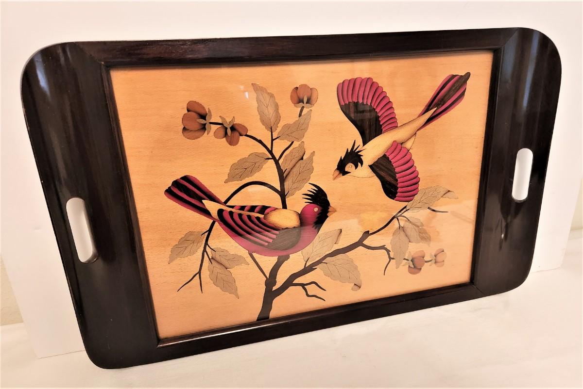 Lot #12  Vintage Inlaid Wooden Tray - Bird Motif