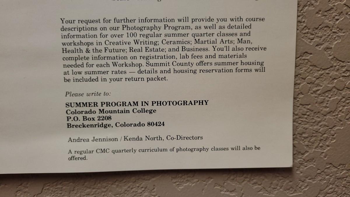 Lot 12: Vintage SUMMER PROGRAM IN PHOTOGRAPHY Summit County w/ Original Photo by Kenda North