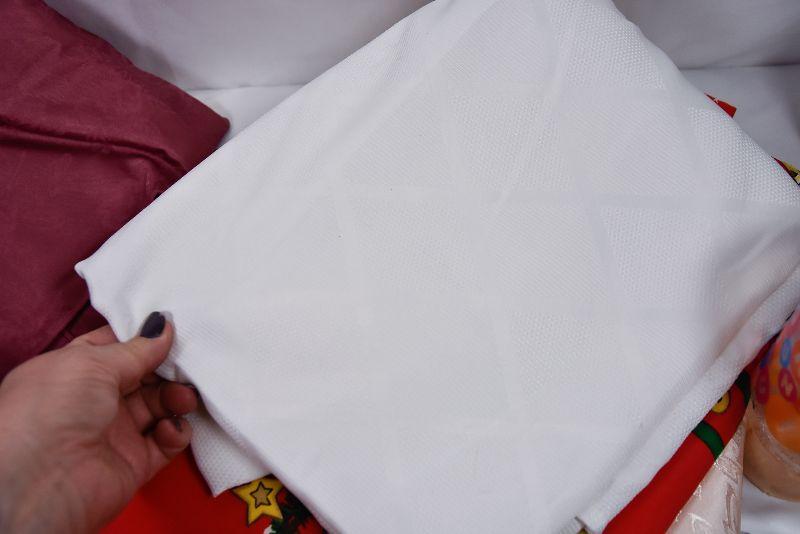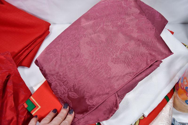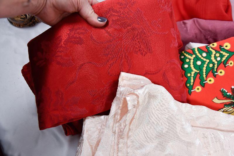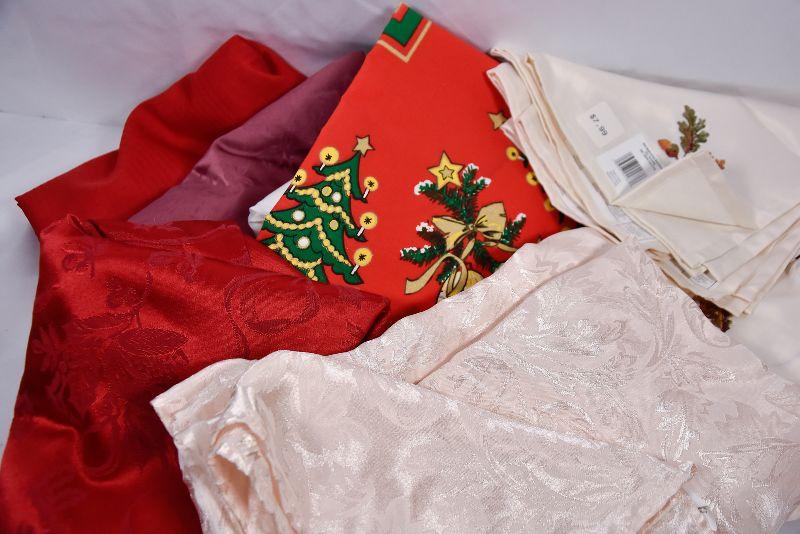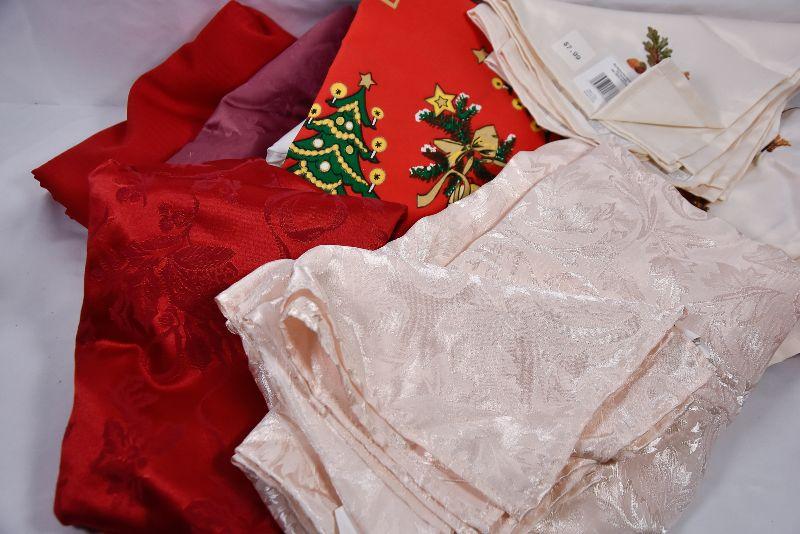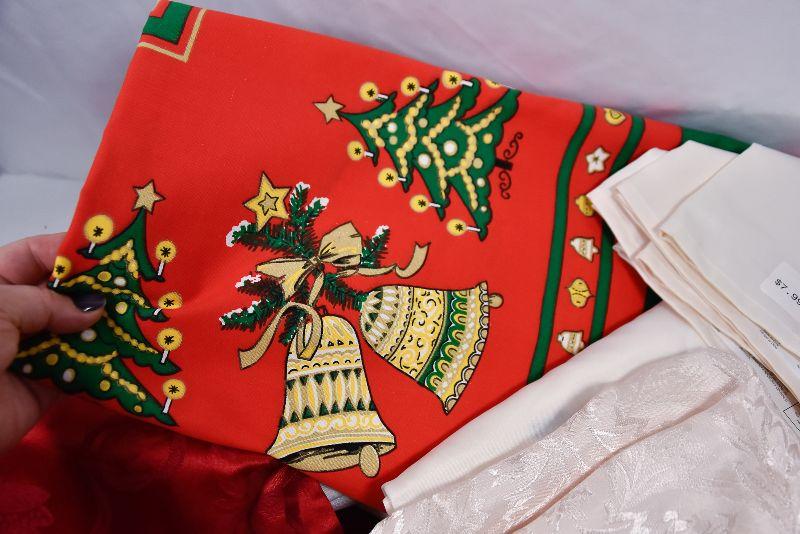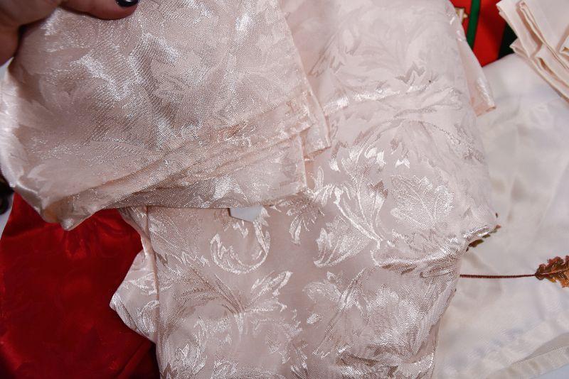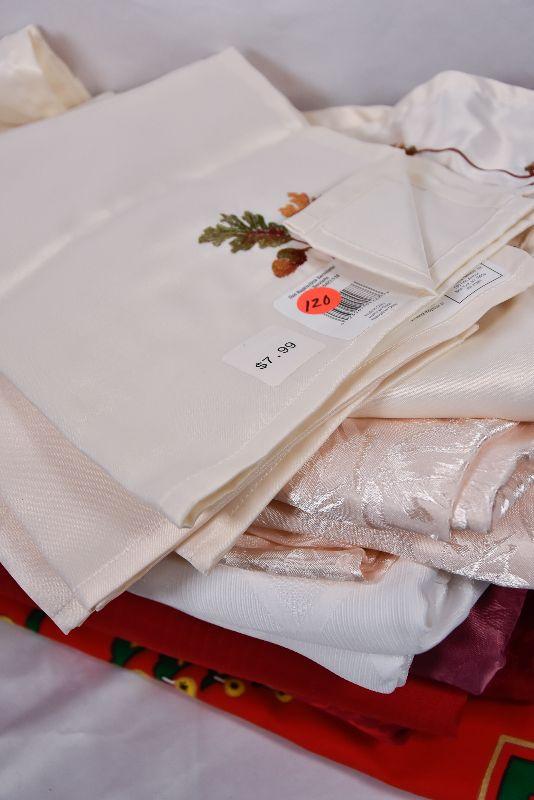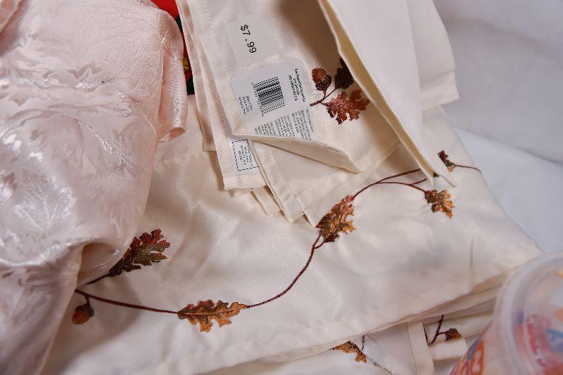 Fall, Christmas, and solids. Comes with matching napkins for fall.