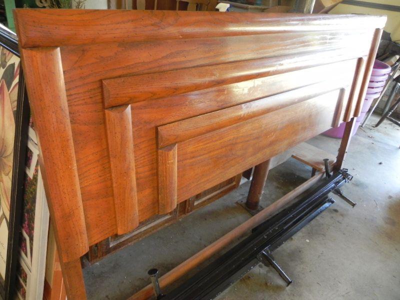 WOOD HEADBOARD MEASURES 75X44" AND ADJUSTABLE METAL FRAME