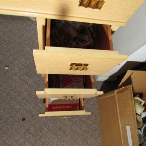 CABINETS HAS 3 DRAWERS THAT HAVE SOME SEWING NOTIONS