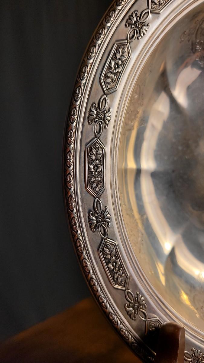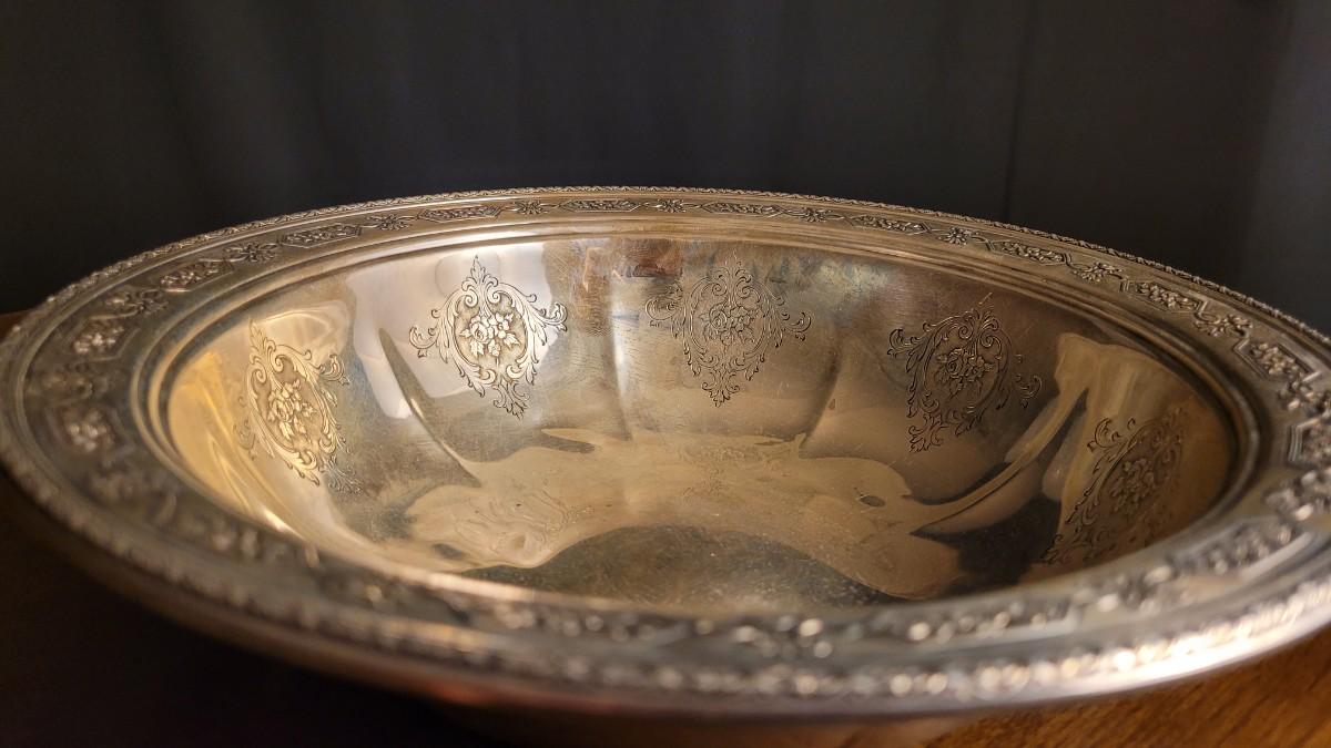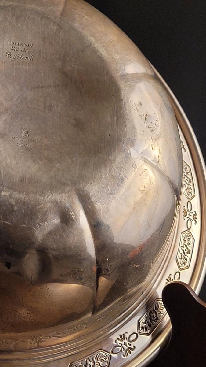 Beautiful Antique Sterling Silver Serving Bowl by TOWLE in the LOUIS XIV Pattern. Does show some pitting spots and a few small dings but overall a nice example. Safe rating of 8 out of 10. Appears to weigh around 356 Grams.