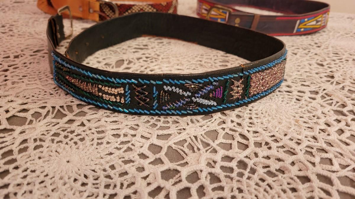 Lot 120: (3) Handmade Leather Belts with Woven Additions