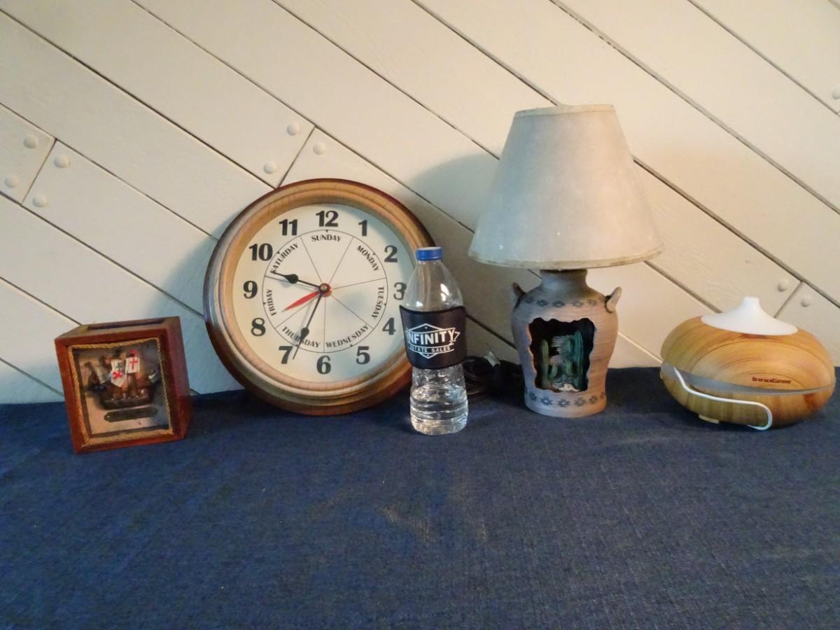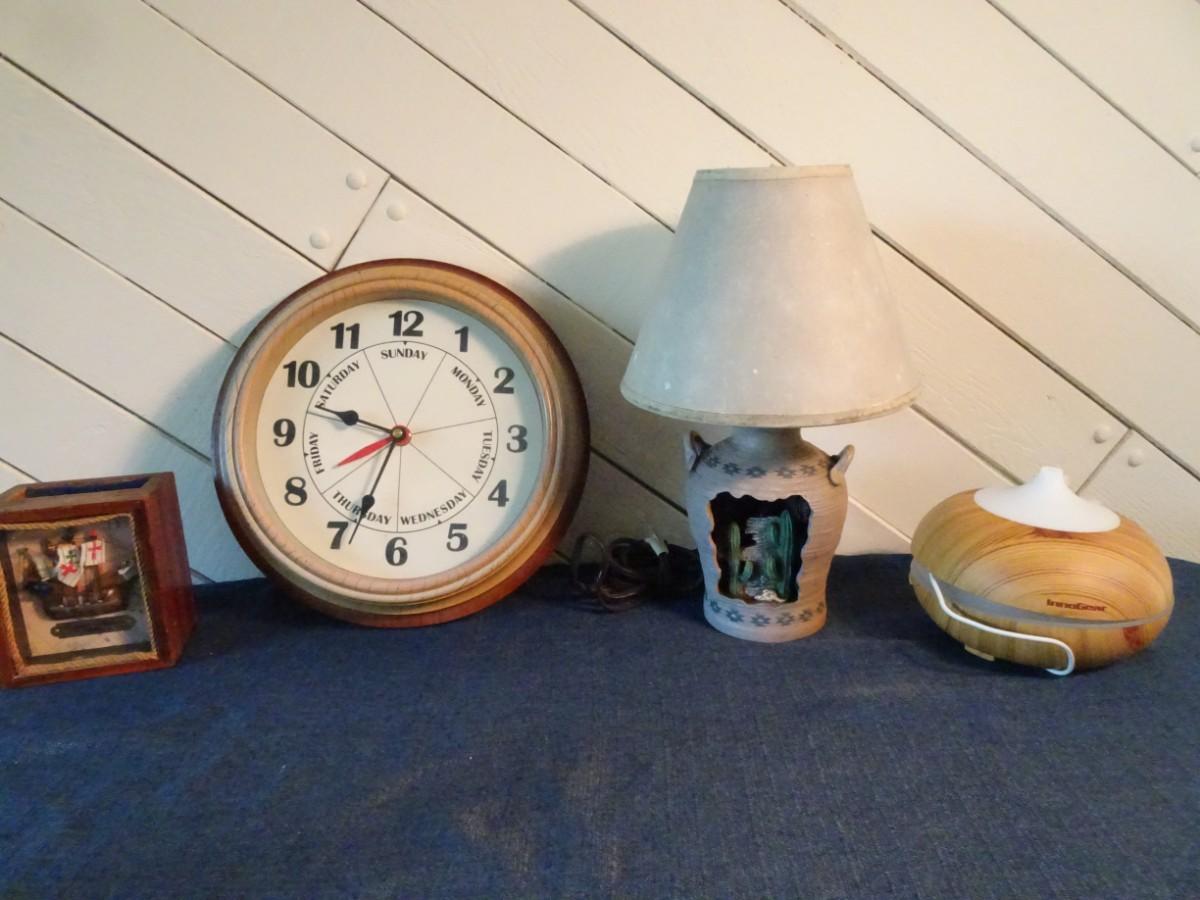 LOT 120. CLOCK, LAMP AND HOME DECOR