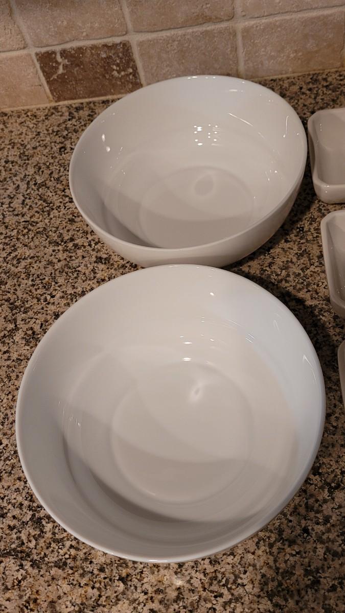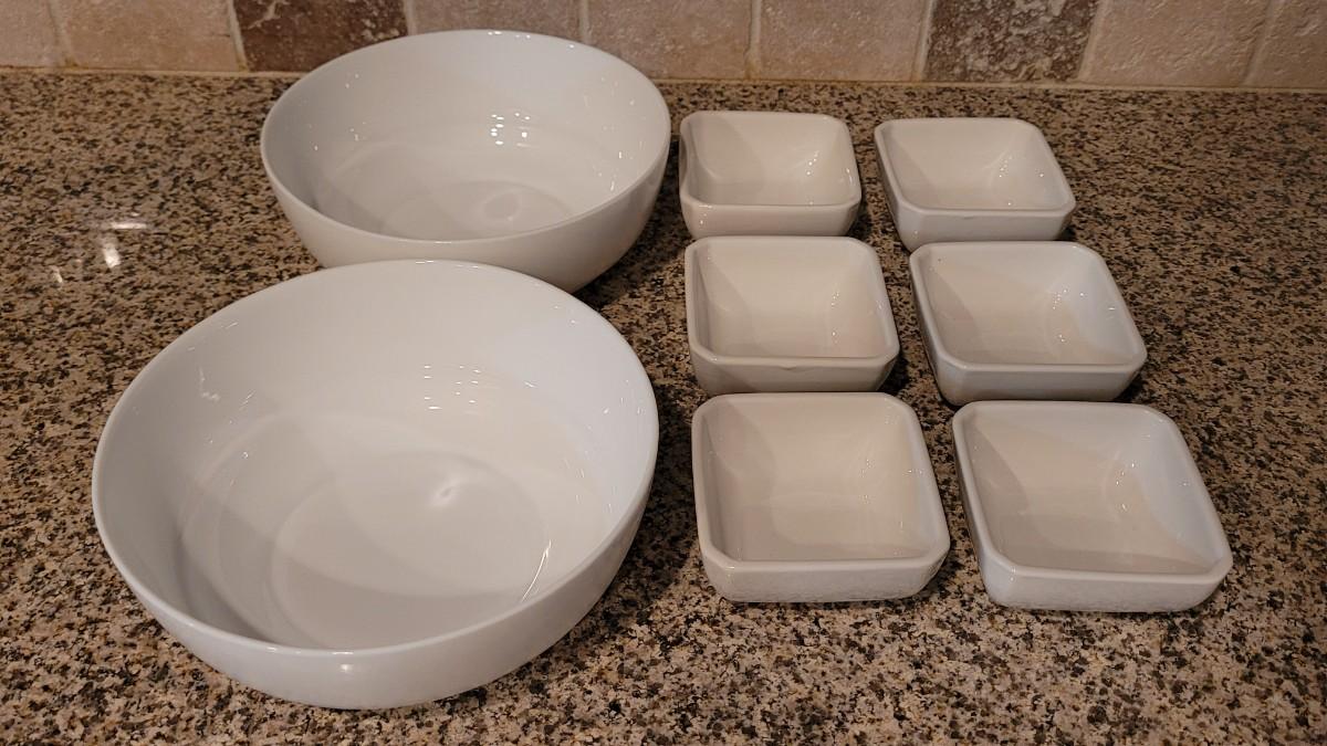 Lot 120: (2) Medium Round White Bowls and (6) Small Square Bowls