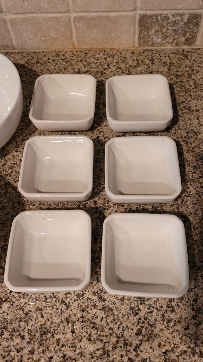 Lot 120:  (2) Medium Round White Bowls and (6) Small Square Bowls