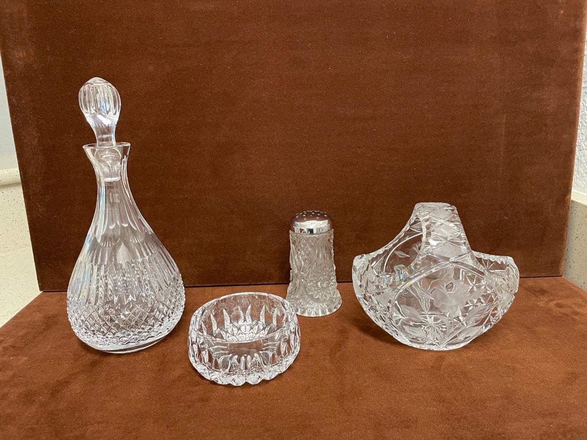 Includes liquor decanter, candy dish, egg-shaped bowl with handle and a shaker