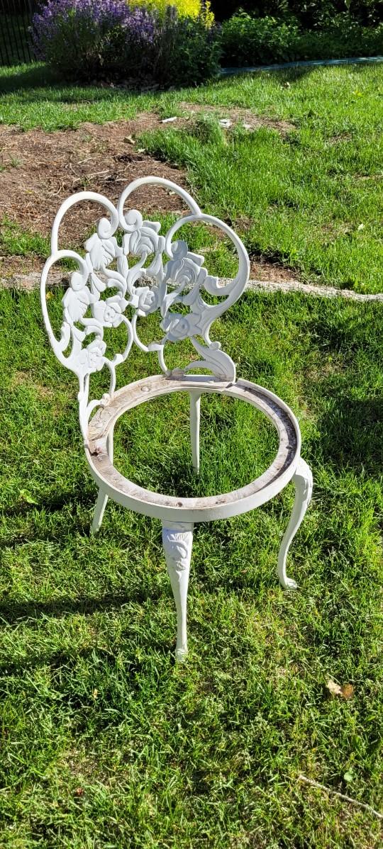 This pretty vintage garden chair simply needs a new seat cushion and you'll have a stylish place to sit if your own design.