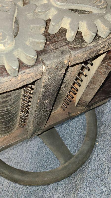 Incredible antique cider press, gears, wood, primitive, heavy! Must move yourself. Please see all pictures for measurements, condition of the item/s, and the contents if listed as a lot. Pictures are the best representation of the item. Thank you for looking and have fun bidding! We appreciate our Treasure Hunters!