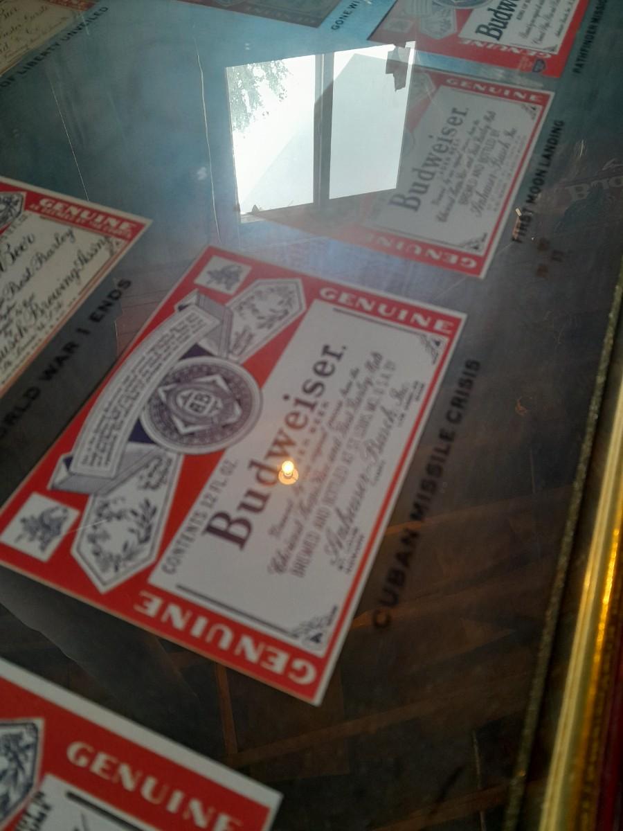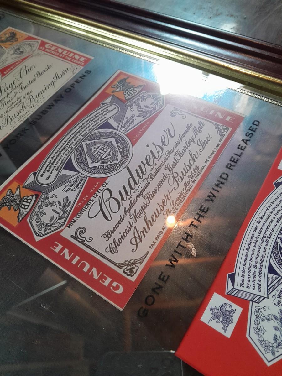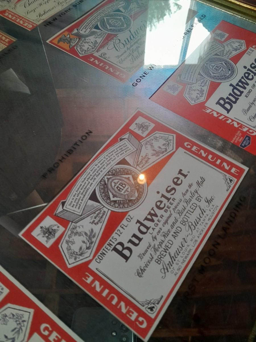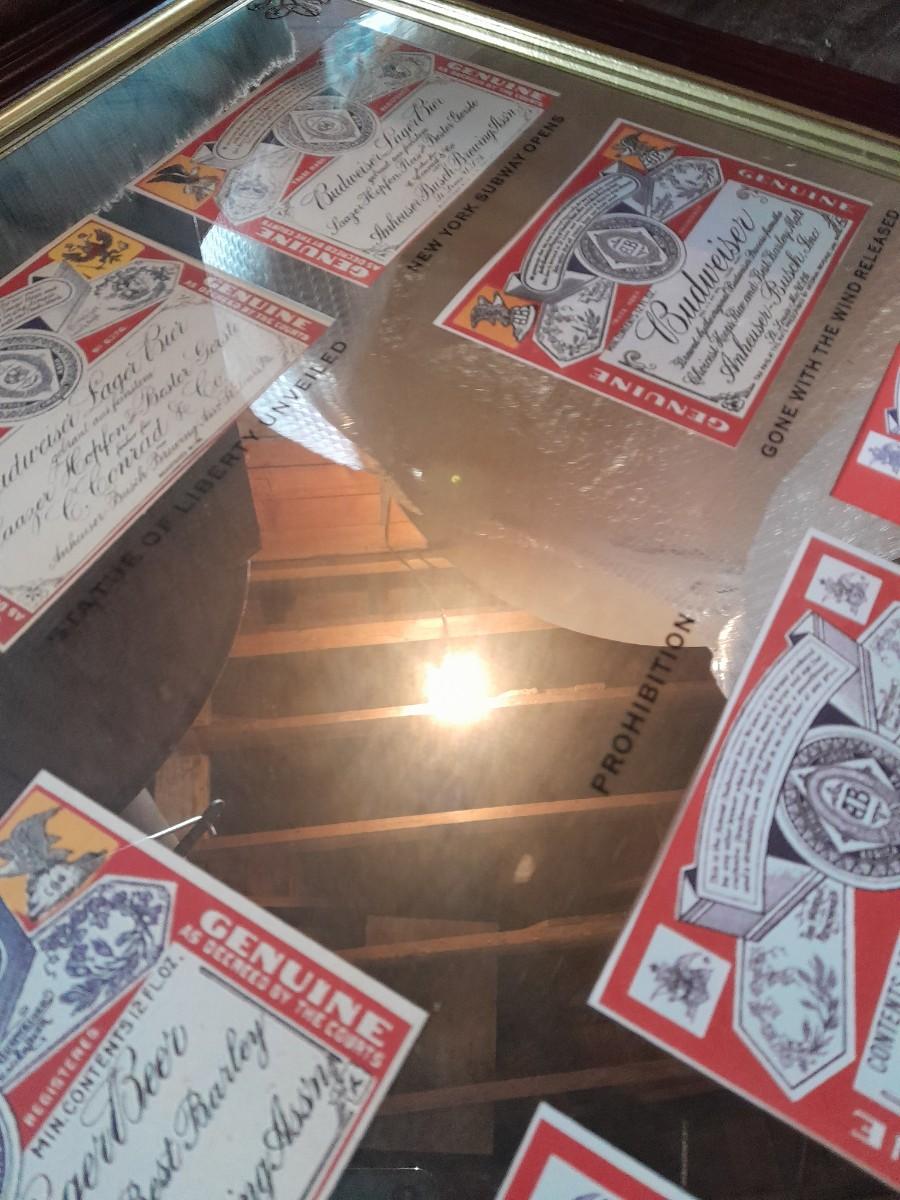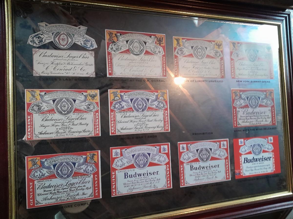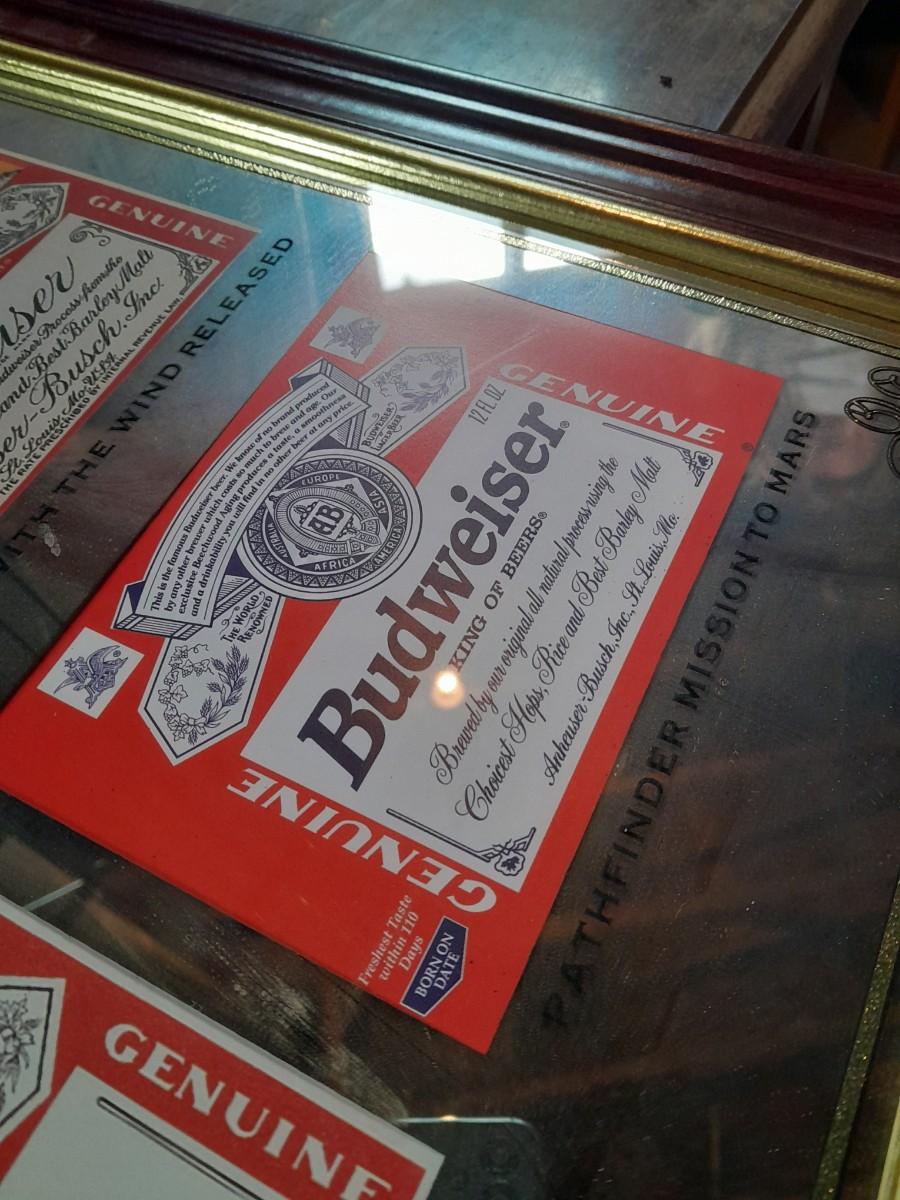 BUDWEISER LABLES THROUGH THE YEARS FRAMED MIRRORED ADVERTISING 30" X 22"