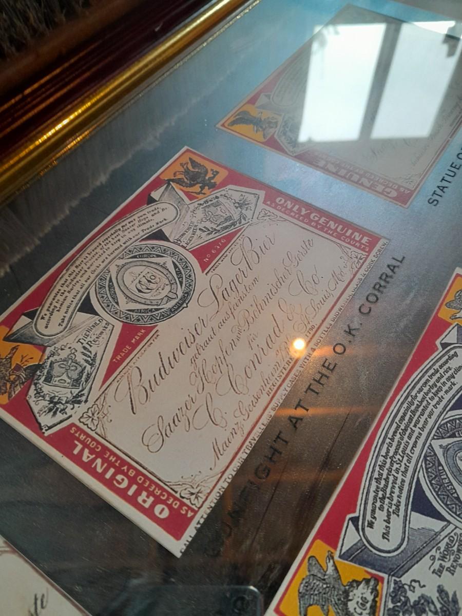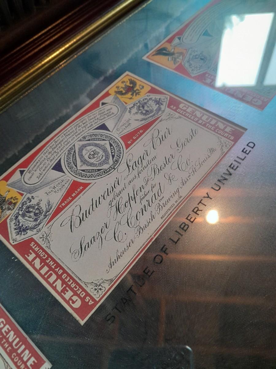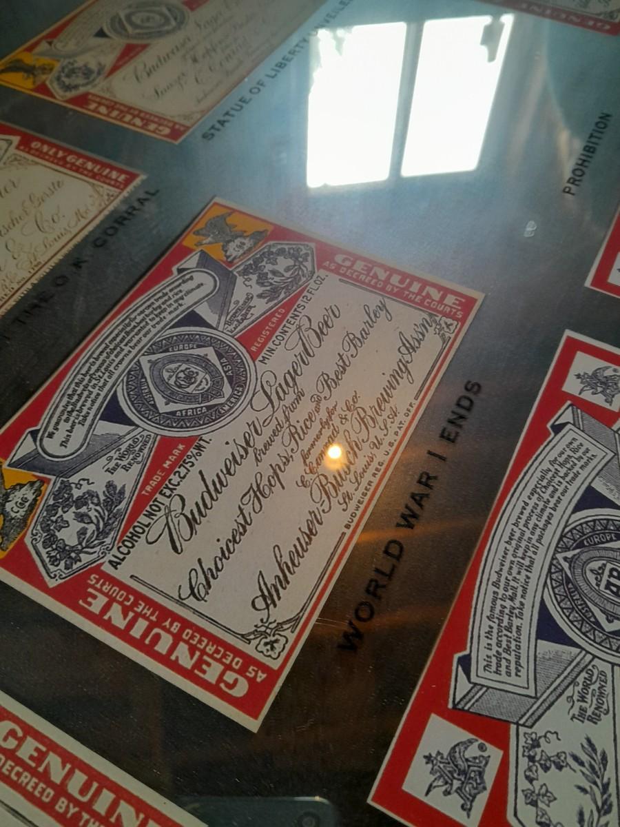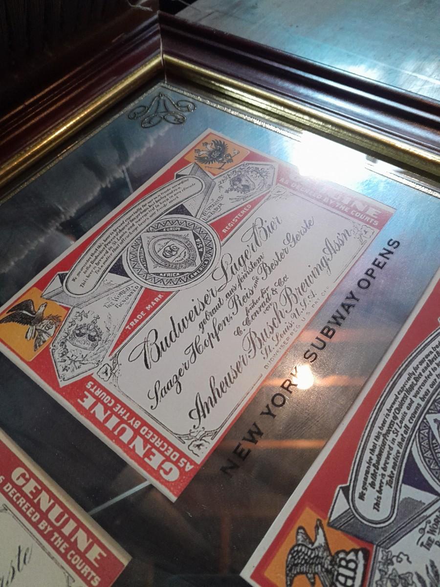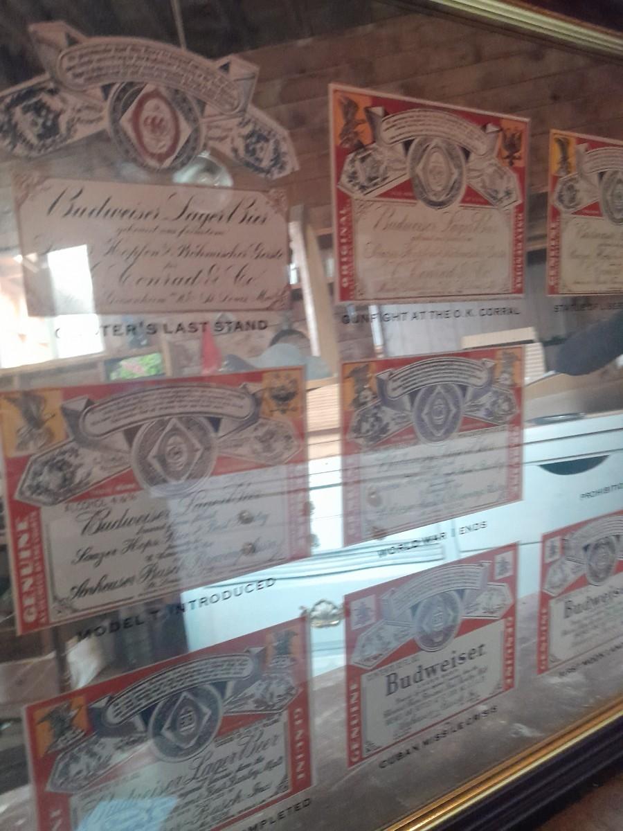 BUDWEISER LABLES THROUGH THE YEARS FRAMED MIRRORED ADVERTISING 30" X 22"
