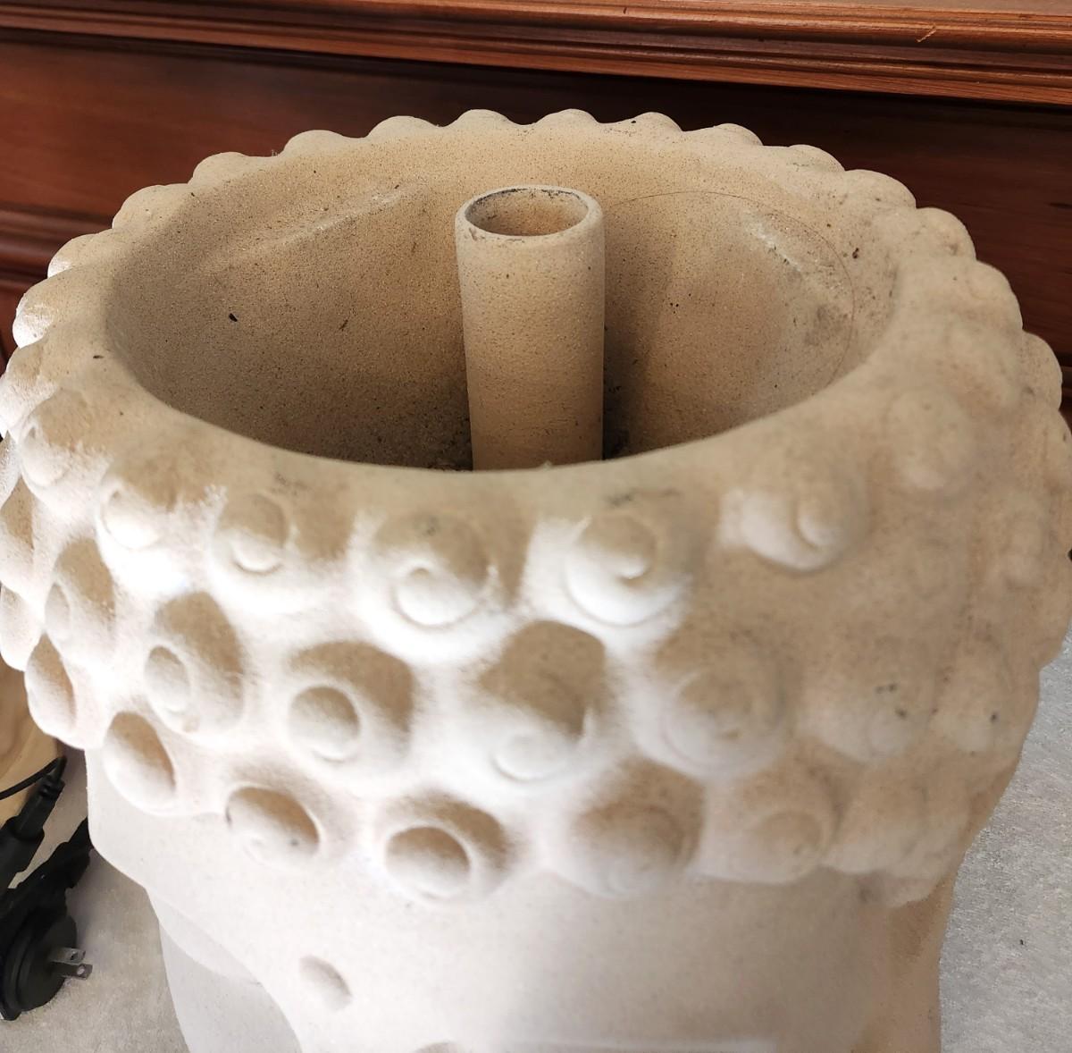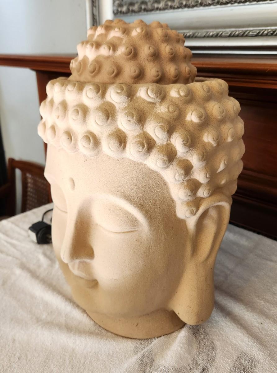Contemporary ceramic 18" tall fountain - Buddha head - complete - works fine. Has lights for night time use. Would be a striking garden piece.