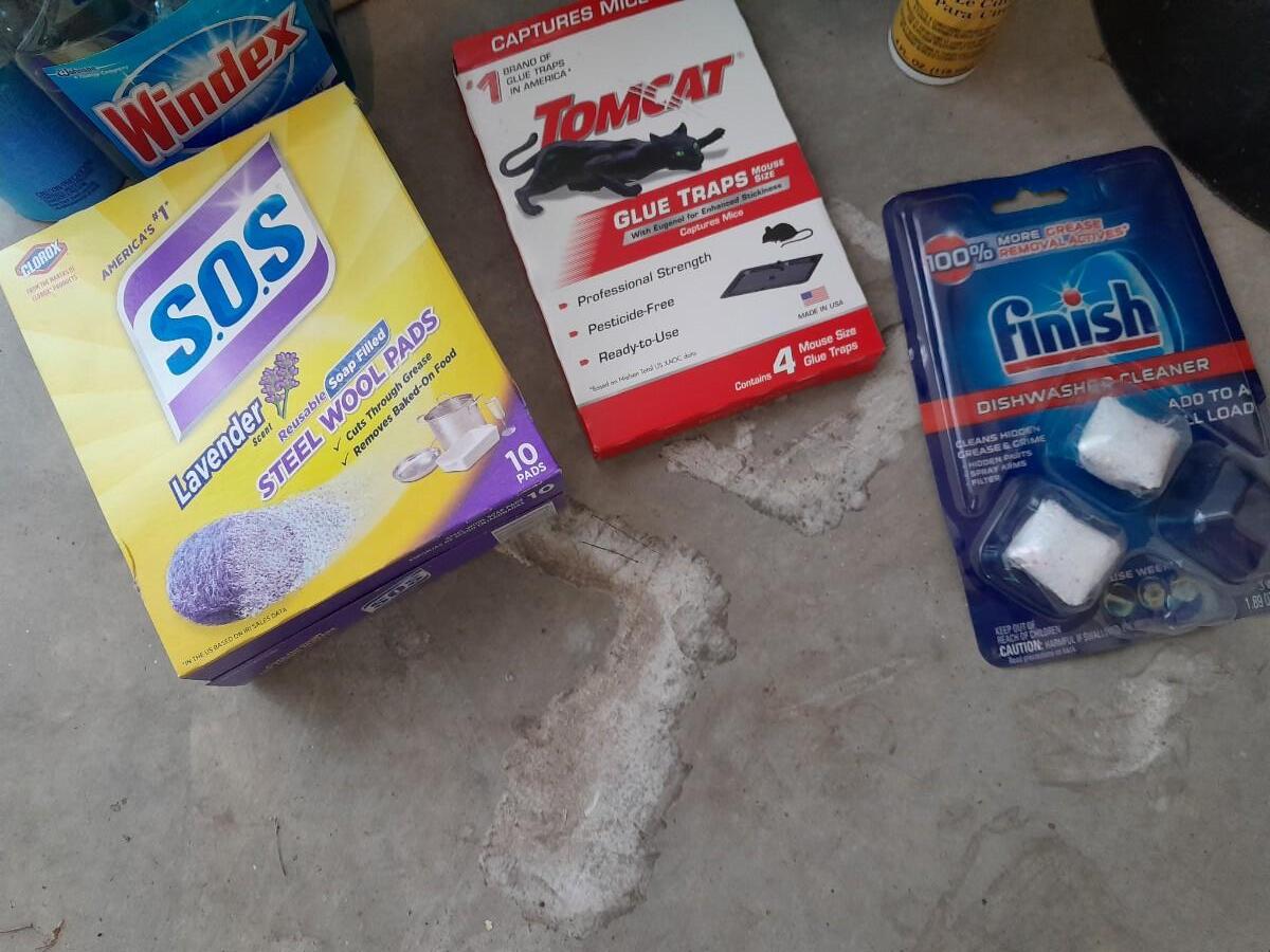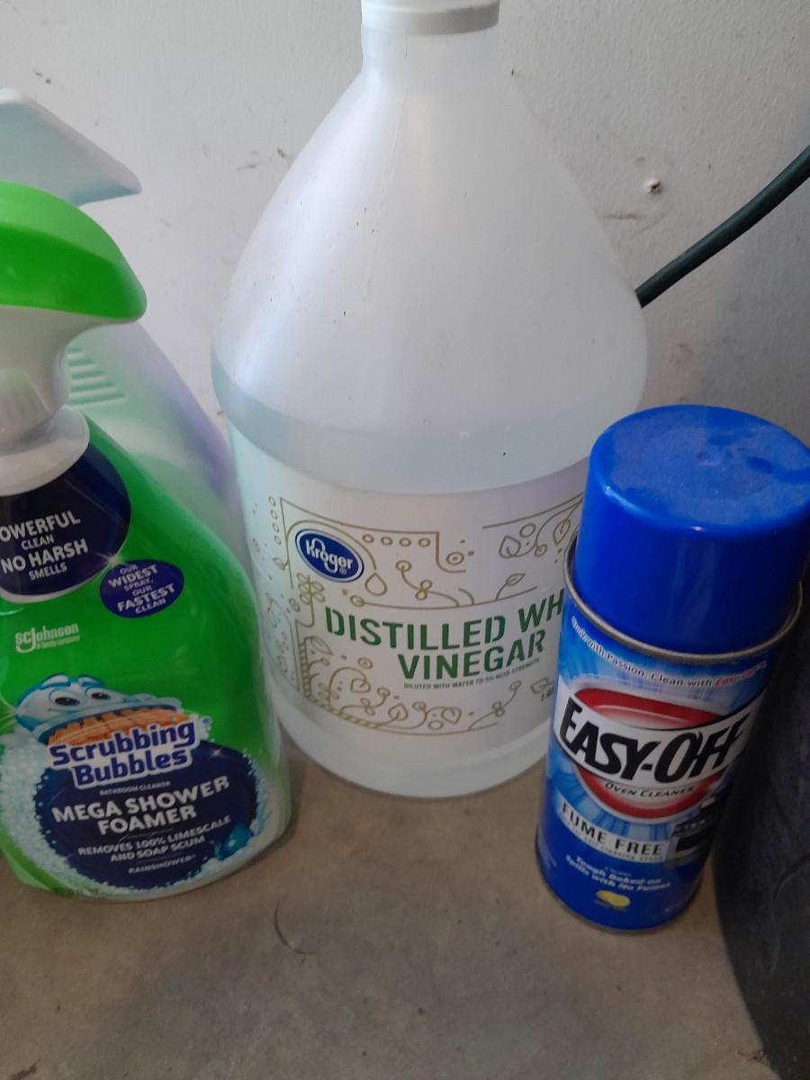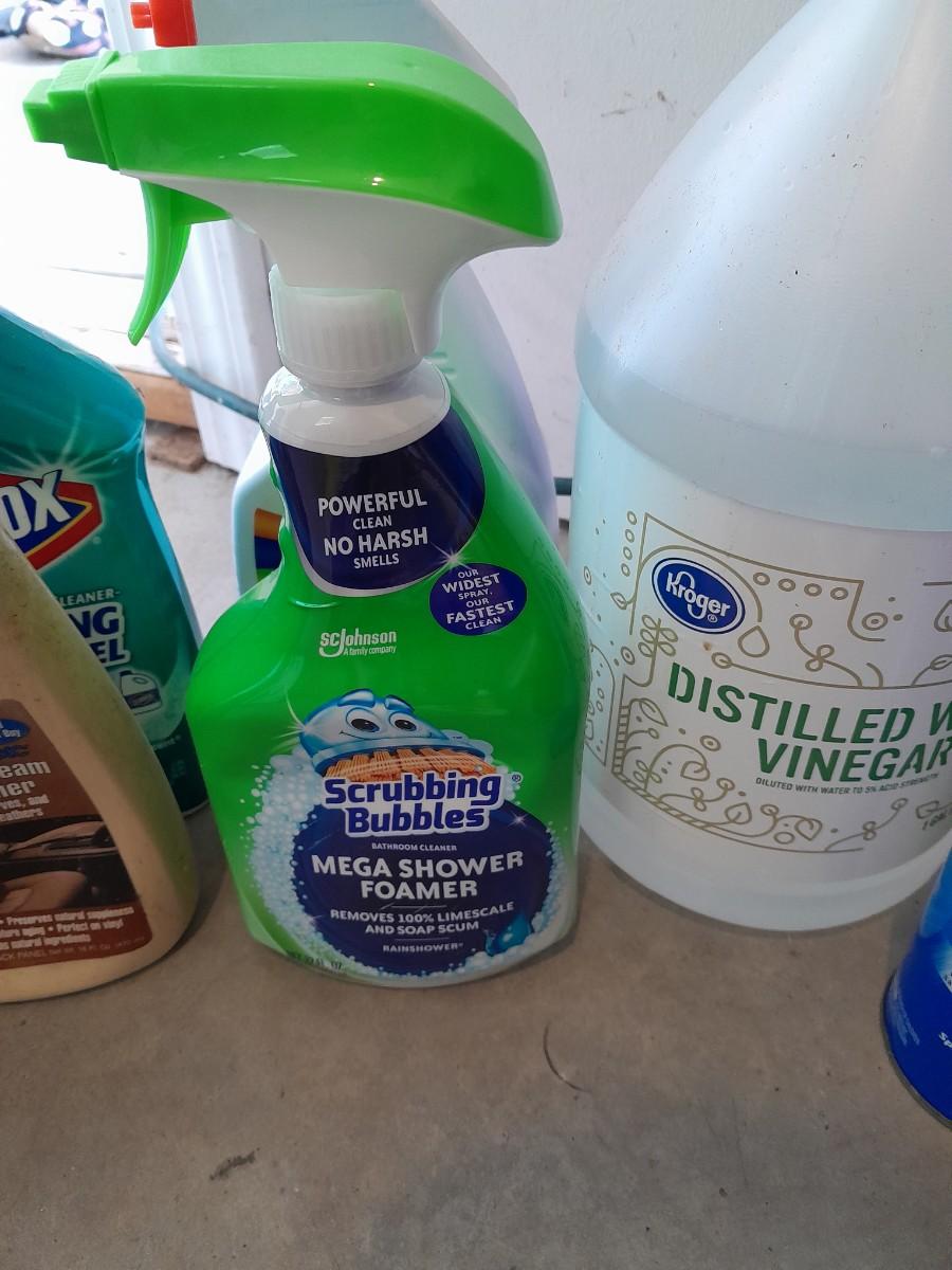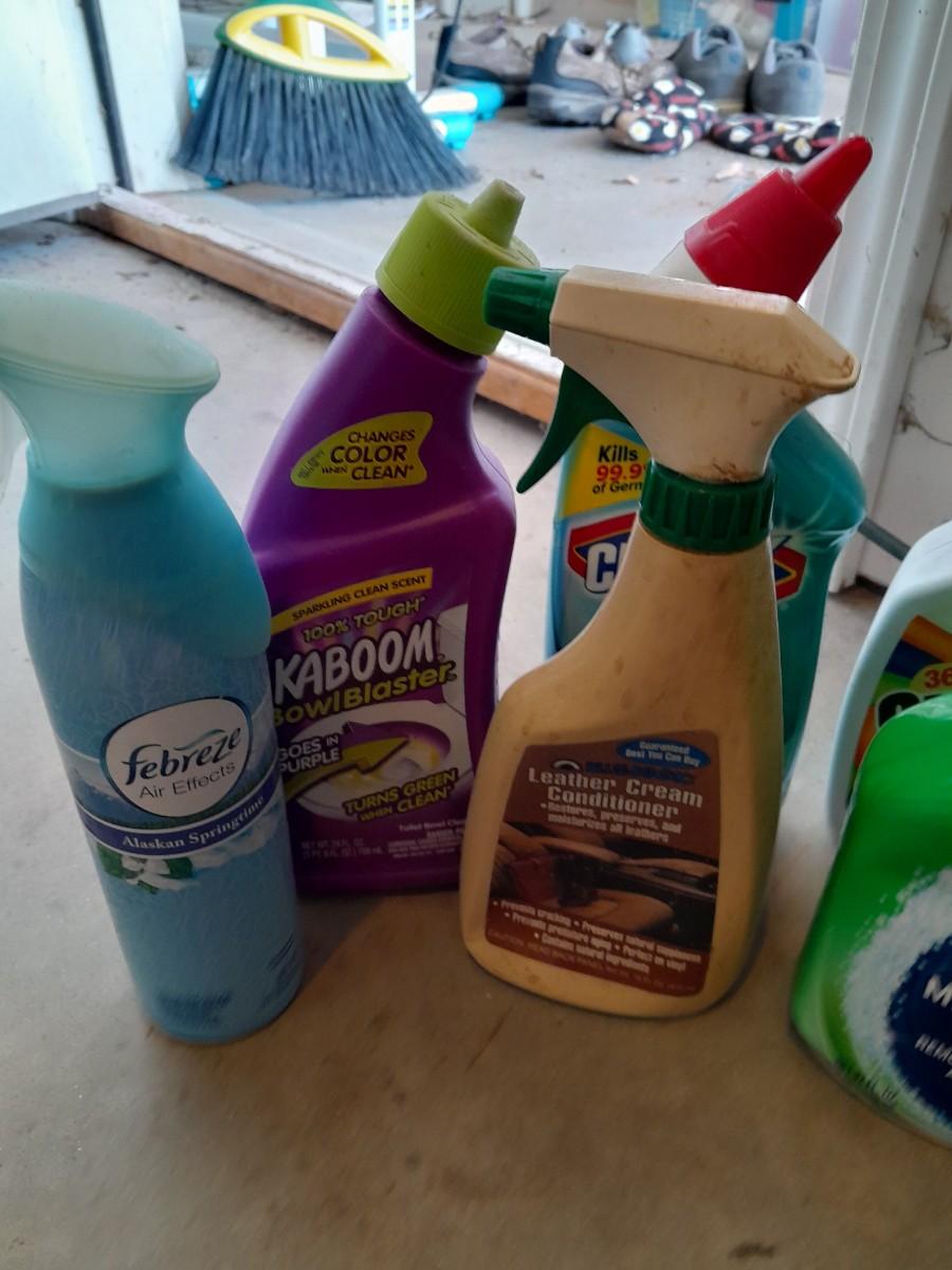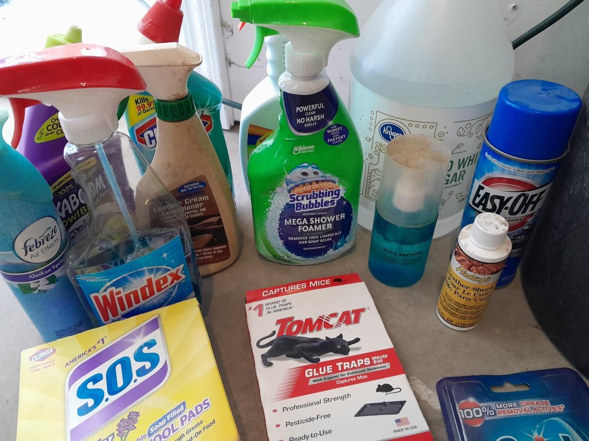 LOT 120 CLEANING CHEMICALS AND SWING TOP TRASH CAN (G)