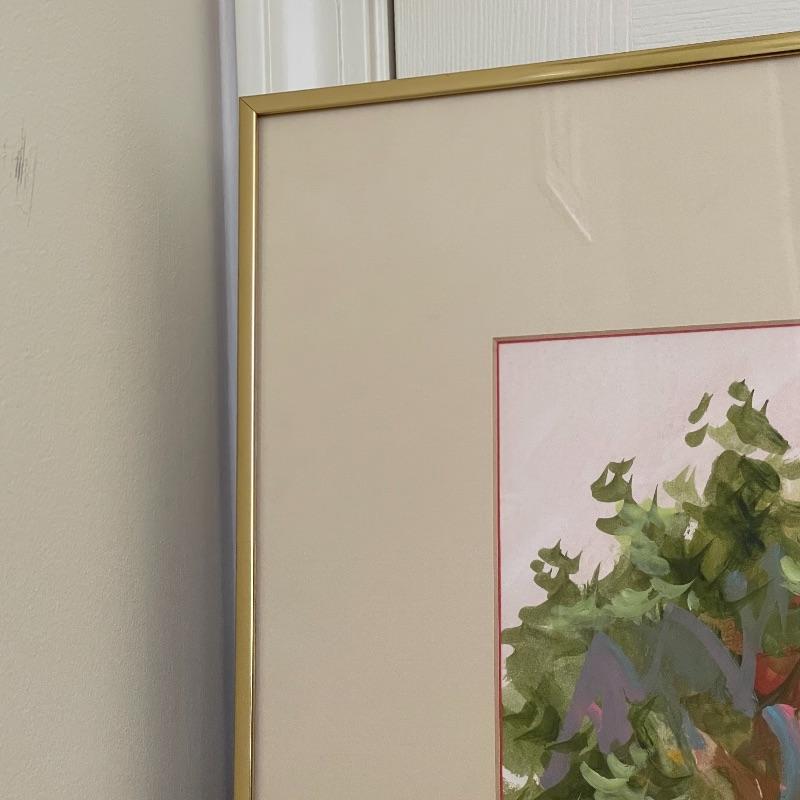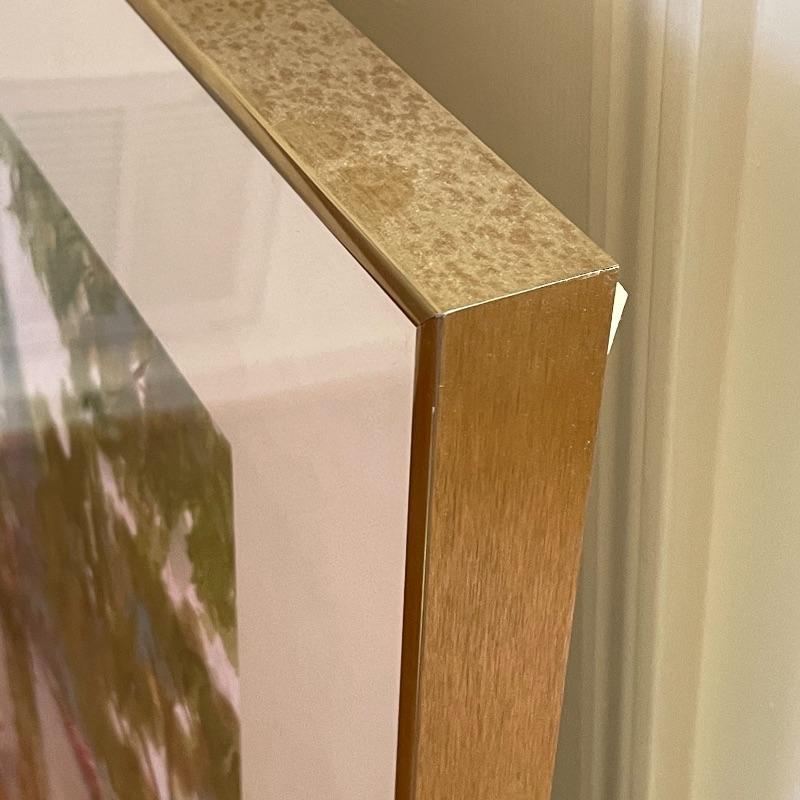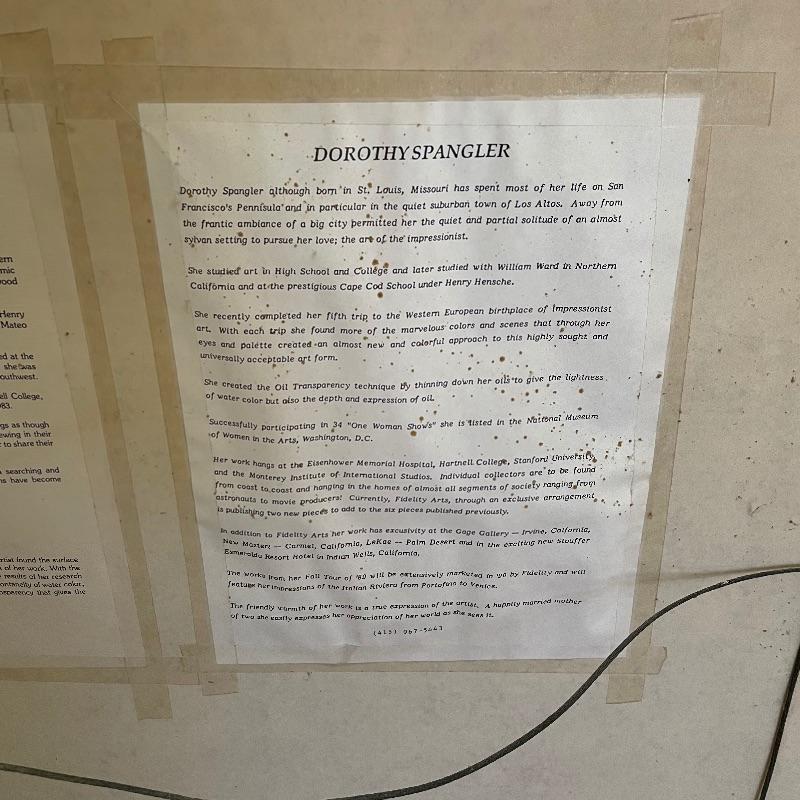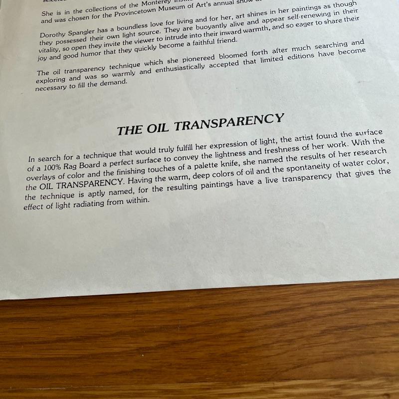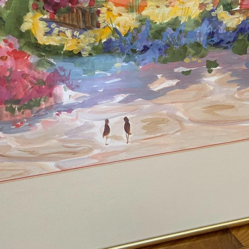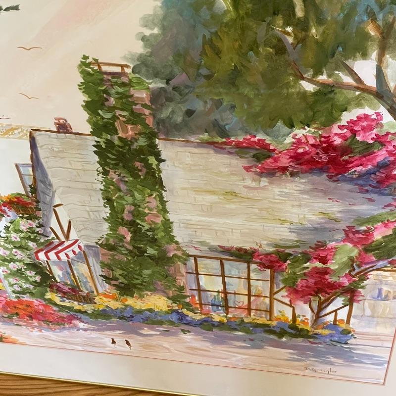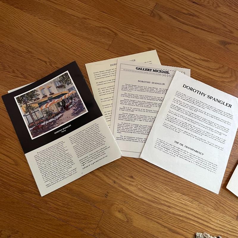 Let us showcase yet another piece of fascinating art. We’ve found some paperwork on the artist and a hand written sales receipt, shown in images and included in lot. The receipt states title “Moulie Savart Flower Shop” and that this piece is an oil painting. At the bottom of the receipt states art is an “oil transparency”, which other found documents state Mrs. Spangler helped innovate. Art sits in matting behind glass in a golden colored 47” x 37.5” metal frame. Shipping available. Please call UPS with dimensions at 828-252-6930 for a shipping quote prior to bidding.
