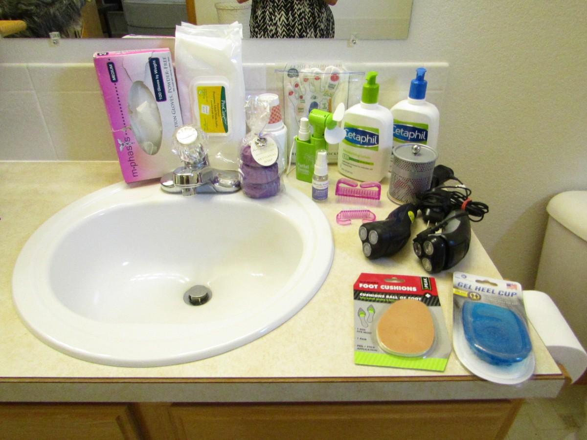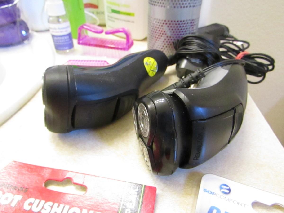 2 ELECTRIC RAZORS, TOILETRIES, Q-TIP HOLDER, SHOE INSERTS AND MORE