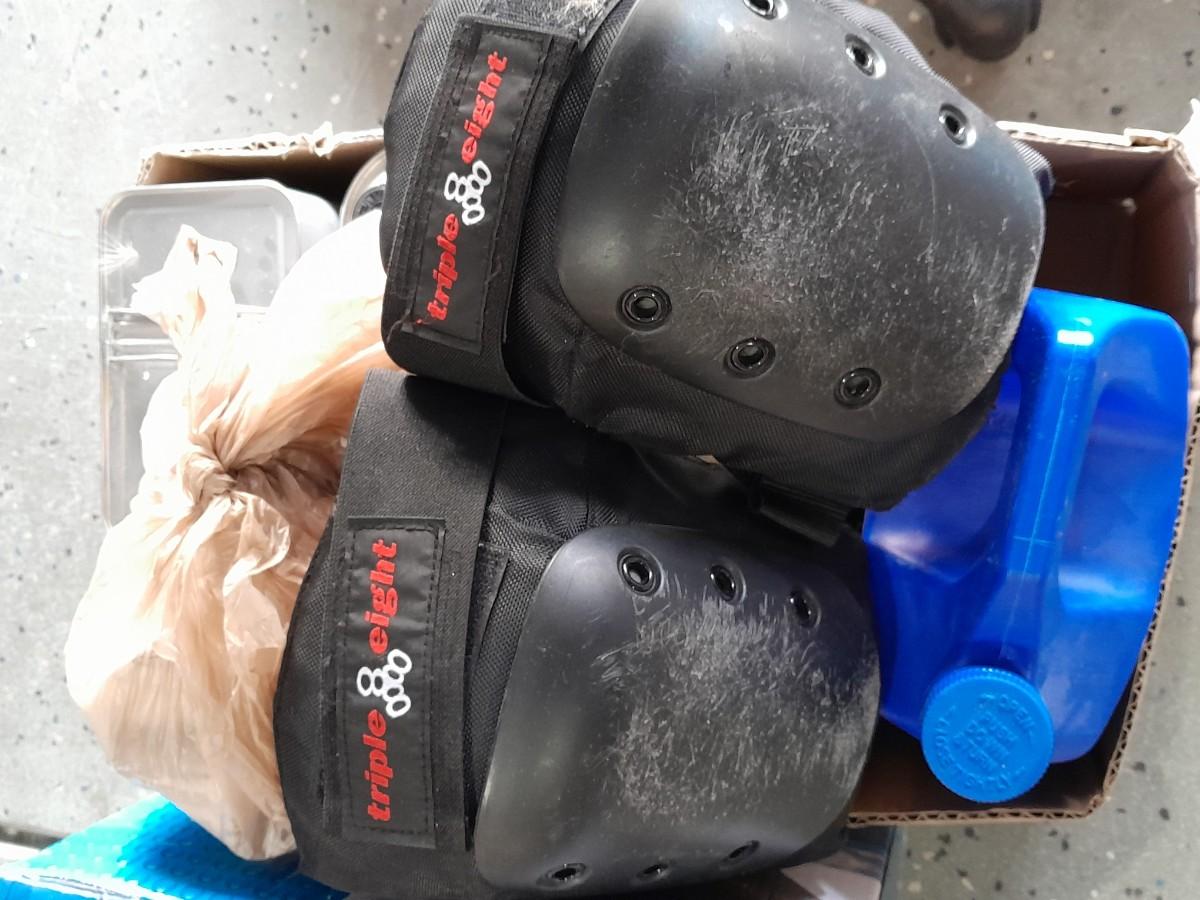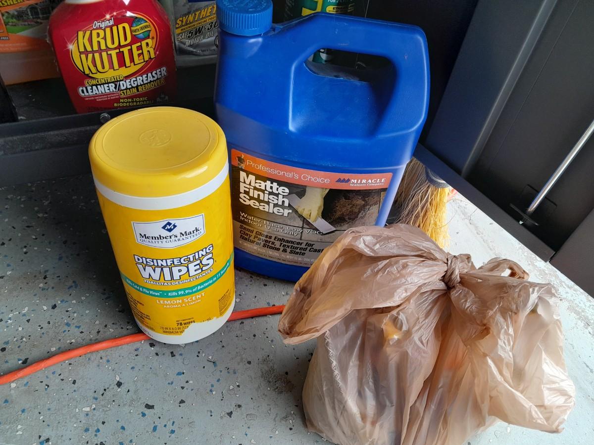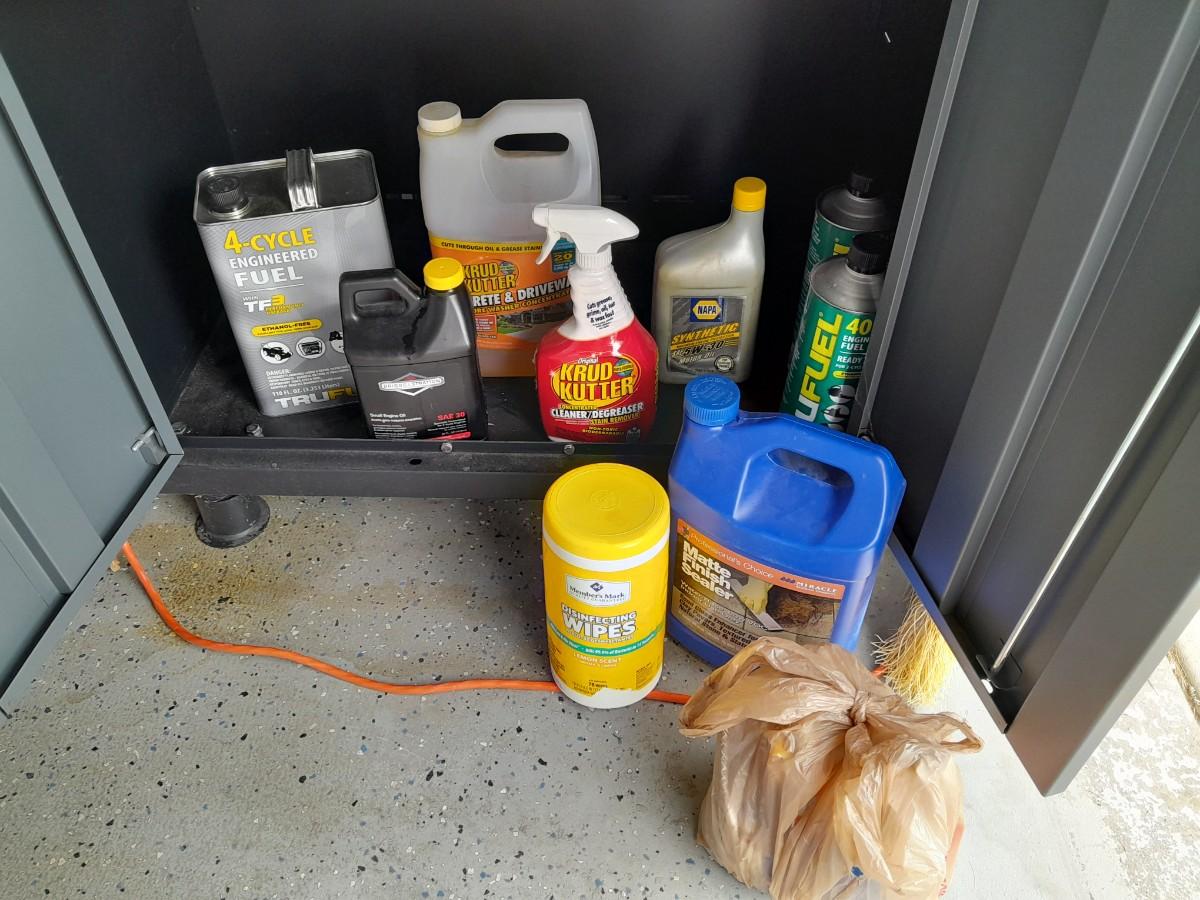 HOUSEHOLD CHEMICALS CLEANING CHEMICALS, DRIVEWAY CLEANER, OIL, 4-CYCLE FUEL, AND MORE WITH KNEE PADS
