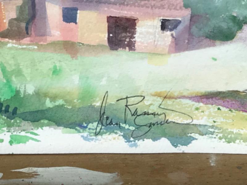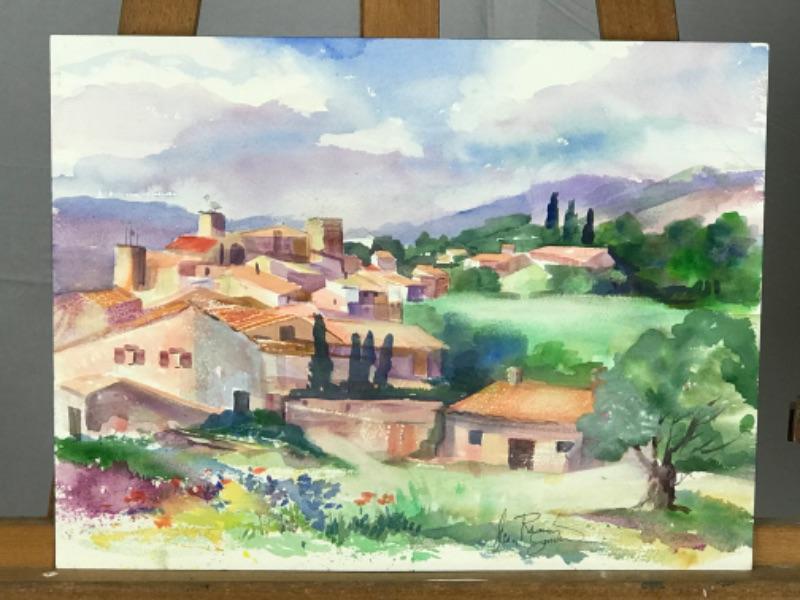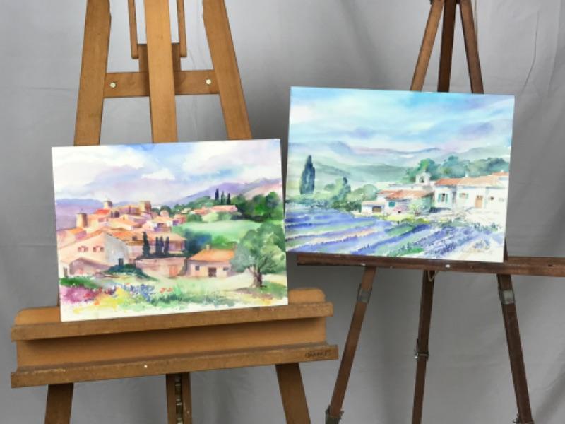 Pair of Jean Ranney Smith signed original watercolors “Village Scenery” measures 16”x12”, “Church Scenery” measures 16”x12”