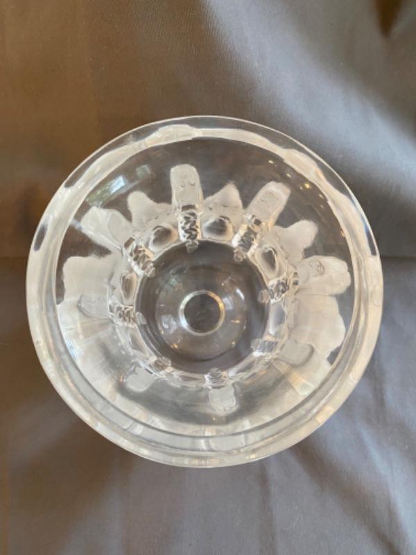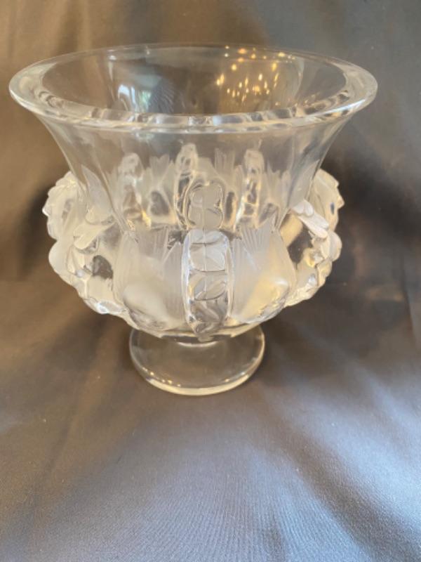Lalique Sparrow vase measures 5” tall x 4.5” round